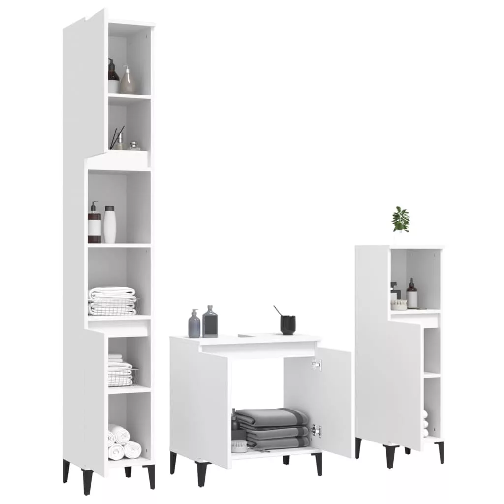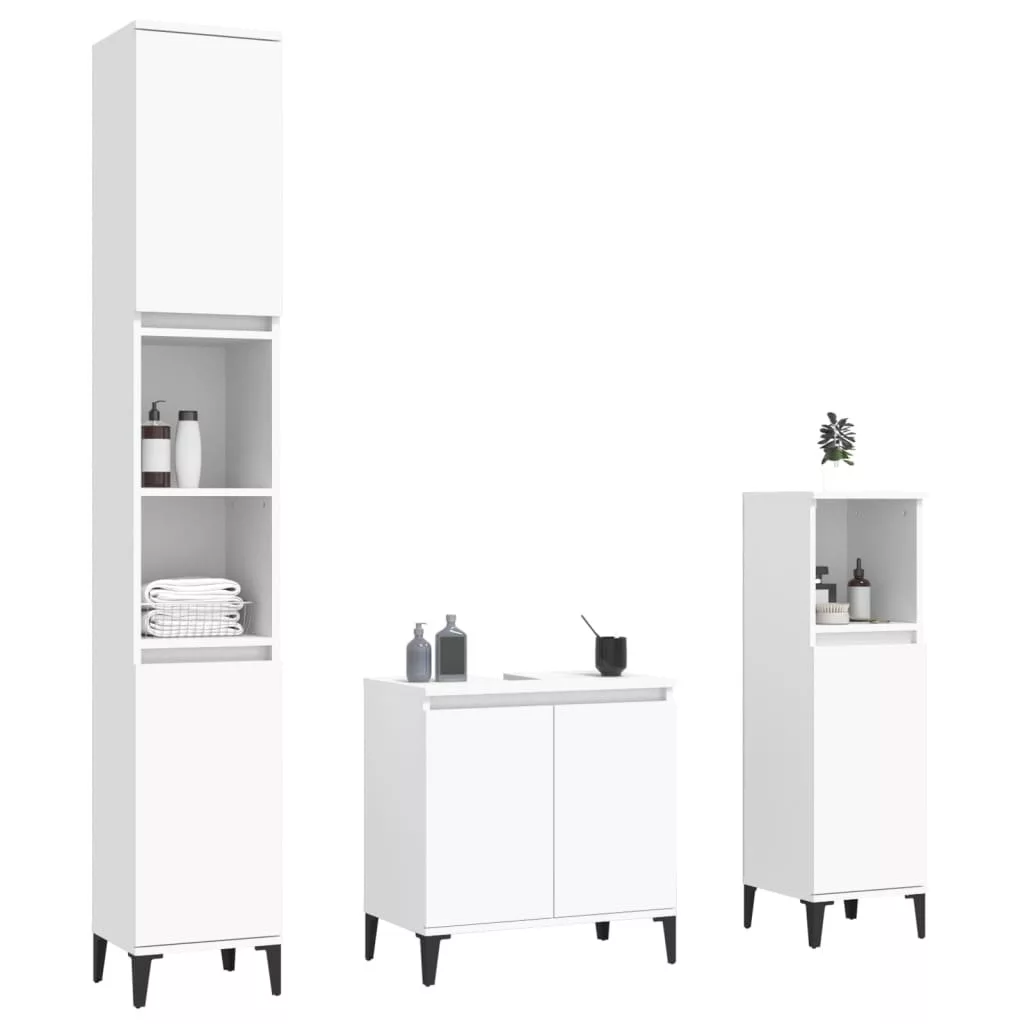 vidaXL 3 részes fehér szerelt fa fürdőszobai bútorszett