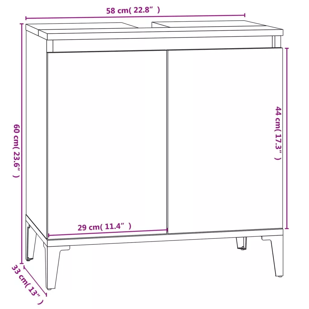 • Mosdószekrény mérete: 58 x 33 x 60 cm (Szé x Mé x Ma)
