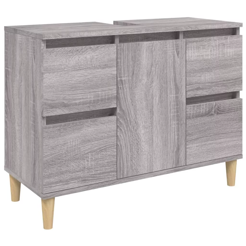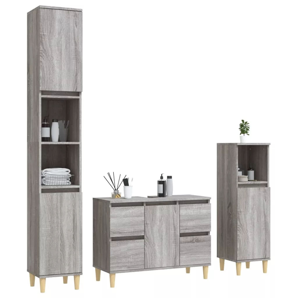 vidaXL 3 részes szürke sonoma színű szerelt fa fürdőszobai bútorszett