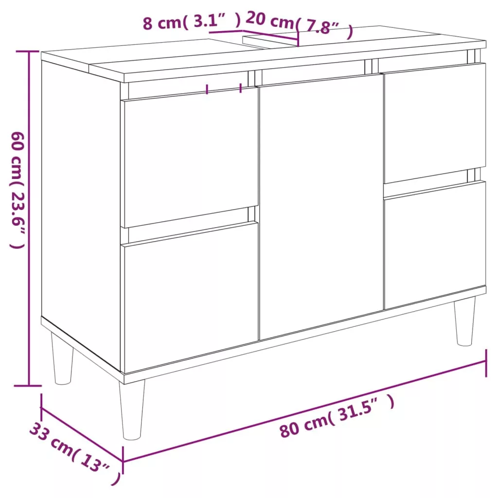 • Mosdószekrény mérete: 80 x 33 x 60 cm (Szé x Mé x Ma)