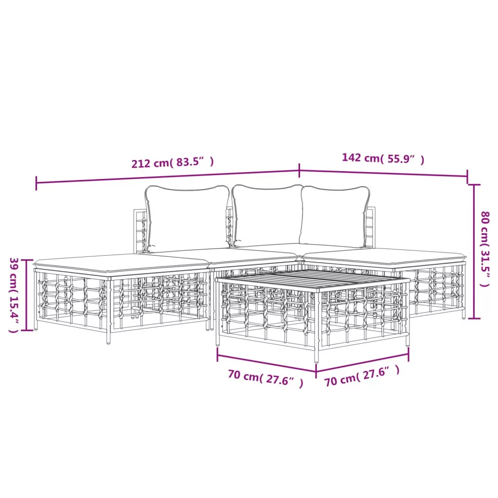 - Anyaga: polyrattan, porszórt acél, textilén