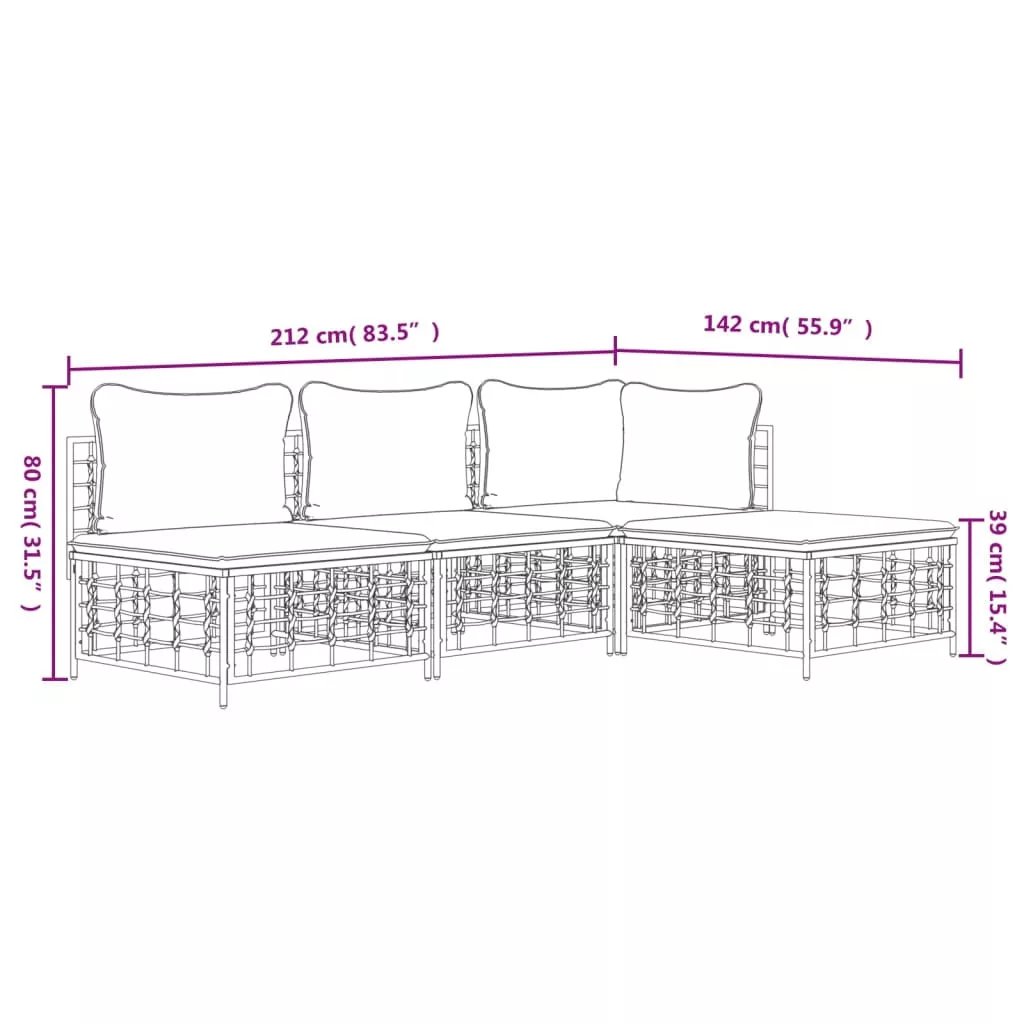 - Anyaga: polyrattan, porszórt acél, textilén