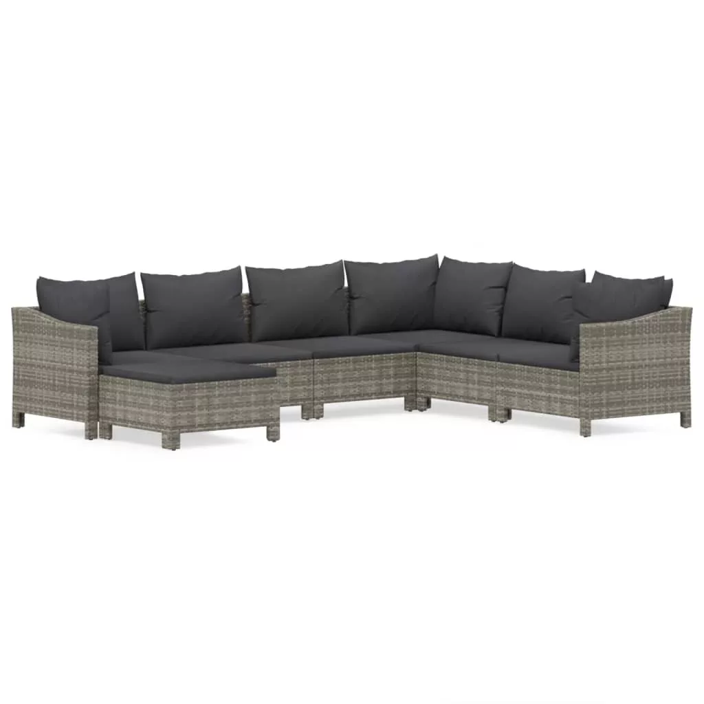 vidaXL 7 részes szürke polyrattan kerti ülőgarnitúra párnákkal
