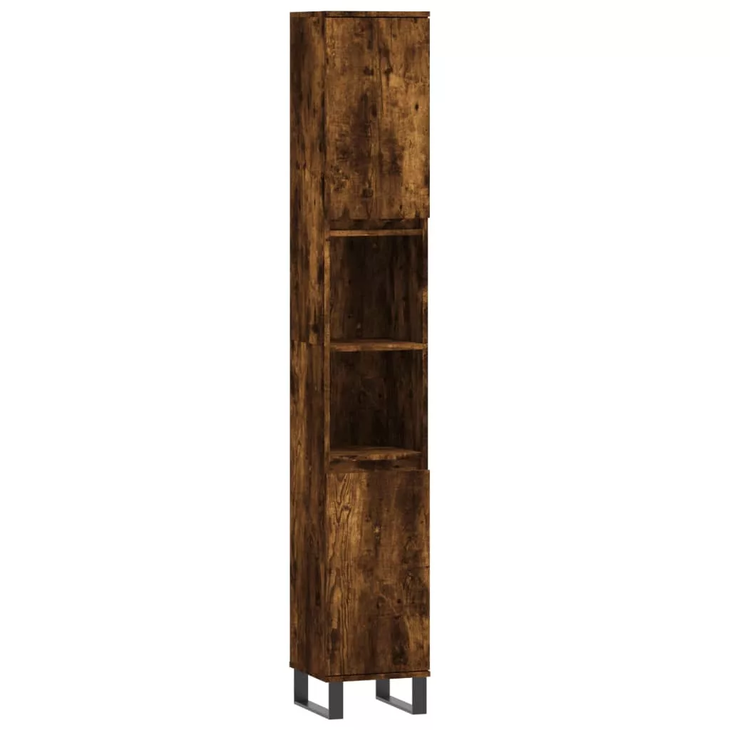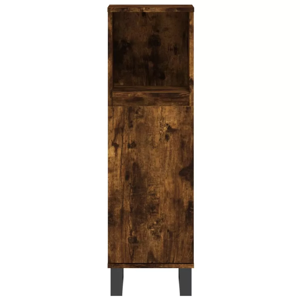 vidaXL 3 részes füstös tölgy szerelt fa fürdőszobai szekrényszett