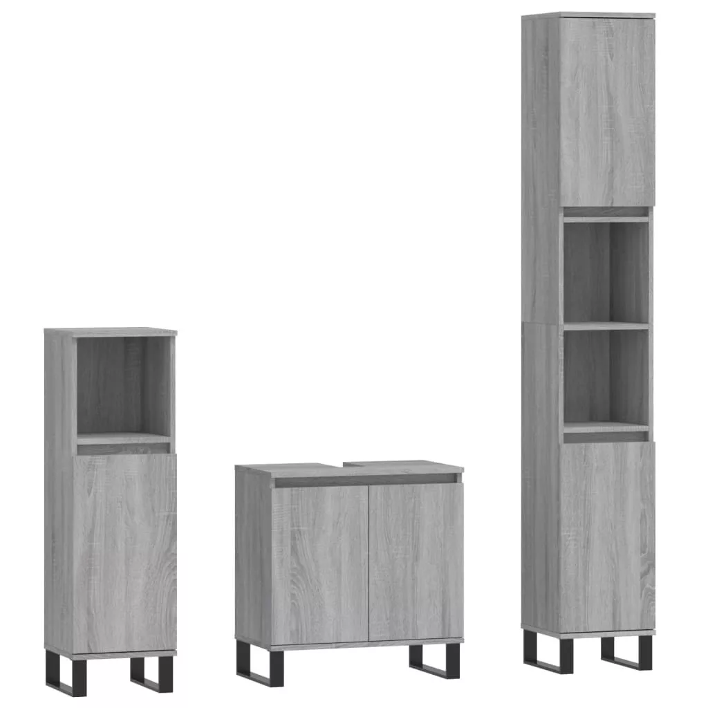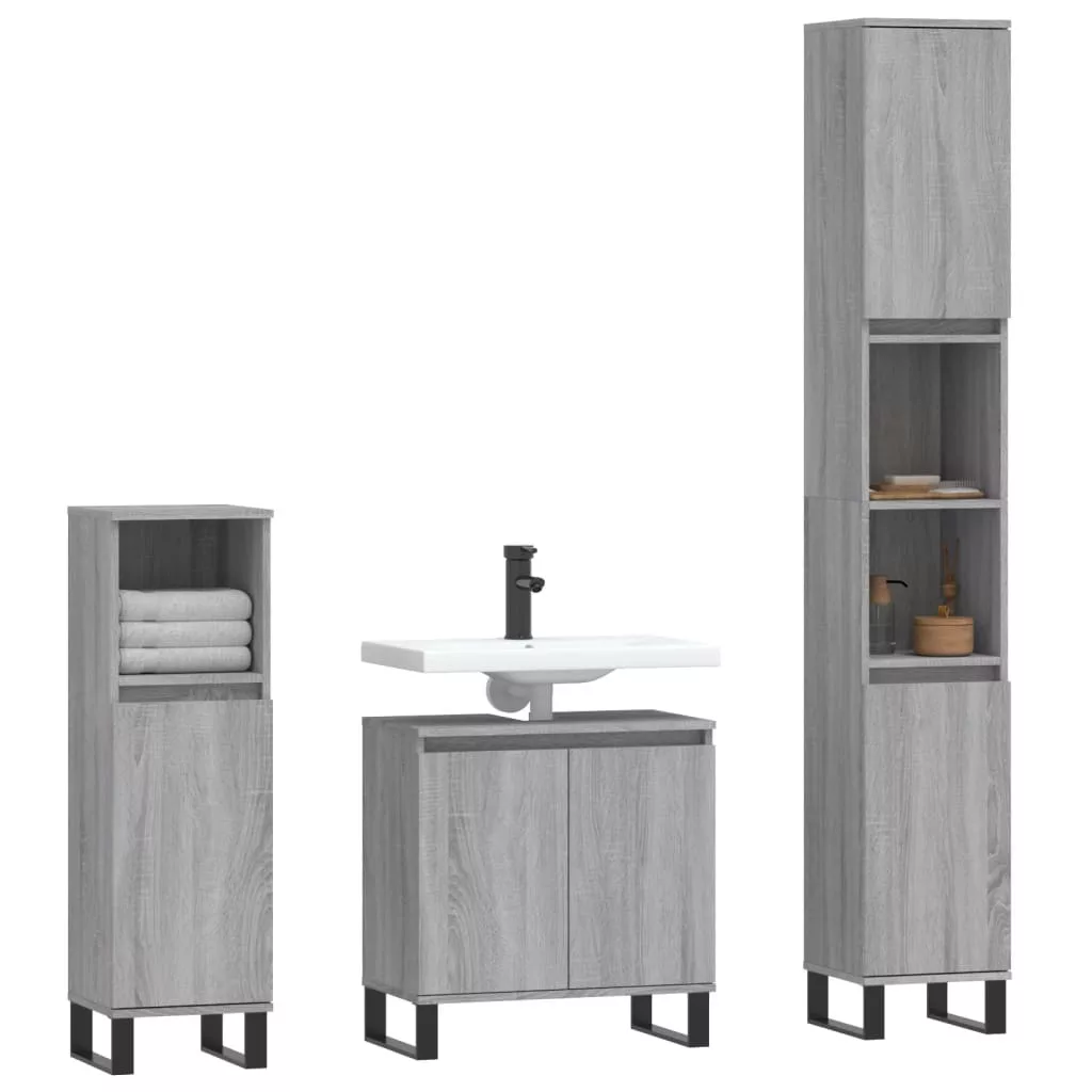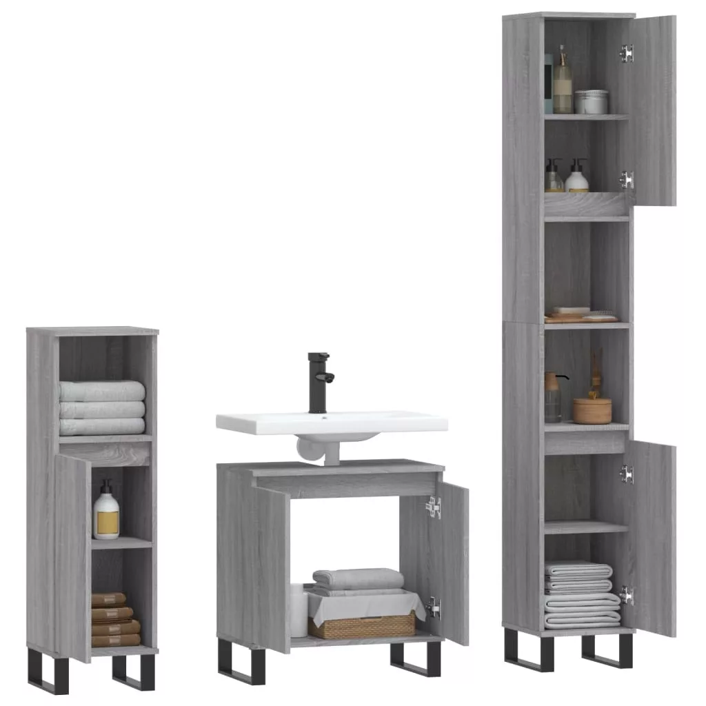 vidaXL 3 részes szürke sonoma szerelt fa fürdőszoba szekrényszett