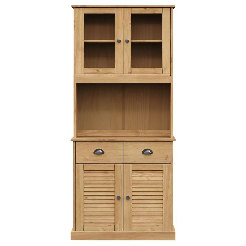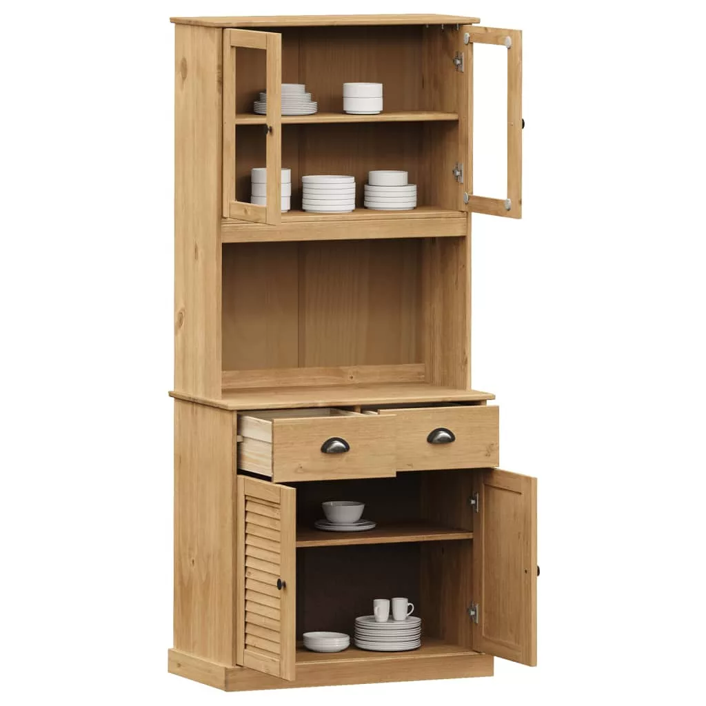 - Tömör fenyőfa: A tömör fenyőfa egy gyönyörű természetes anyag. A fenyőfa egyenes erezetű, a csomók pedig jellegzetes, rusztikus megjelenést biztosítanak az anyagnak. Ez a tálalószekrény tömör fenyőfából készült, így strapabíró és masszív.