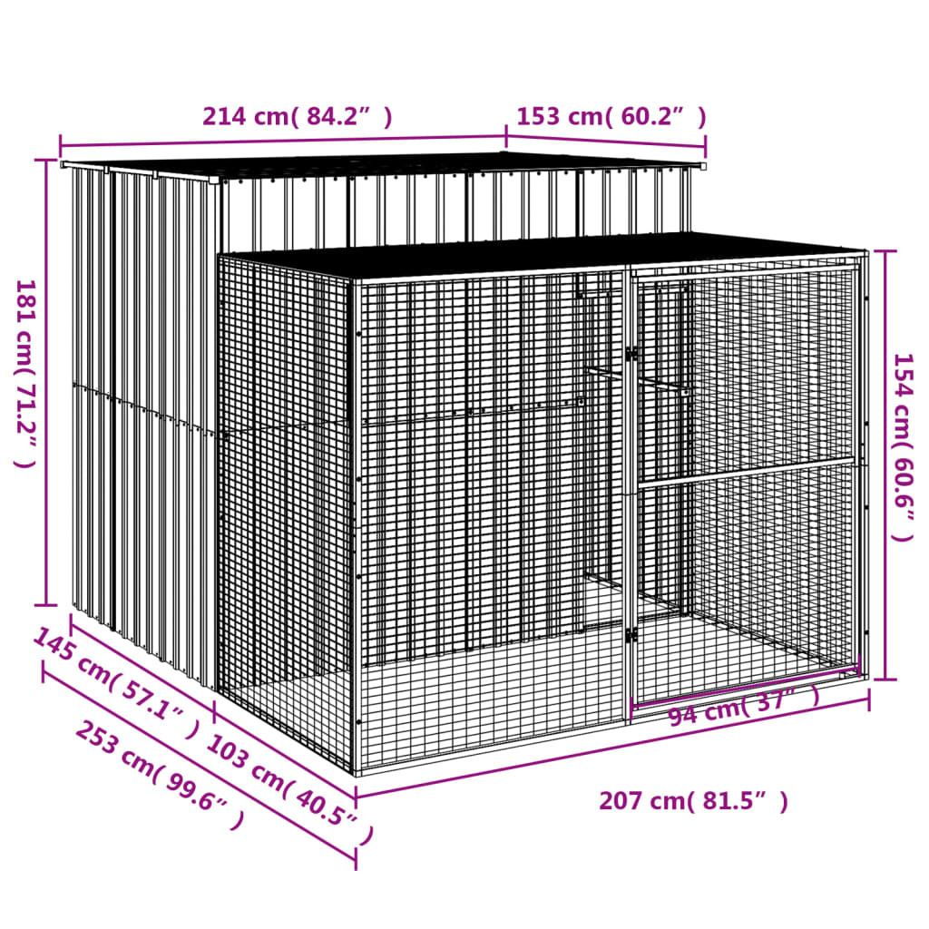 vidaXL antracitszürke horganyzott acél kutyakennel 214x253x181 cm