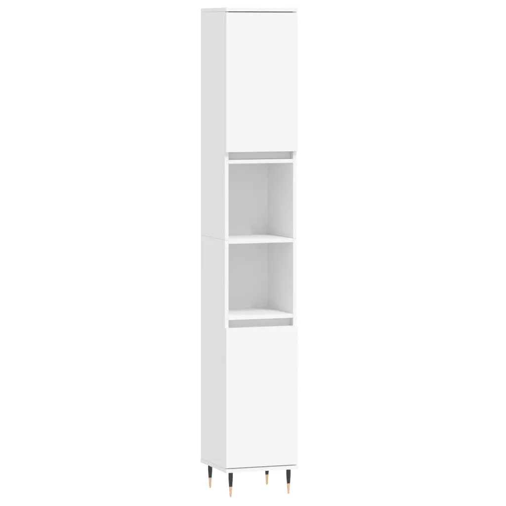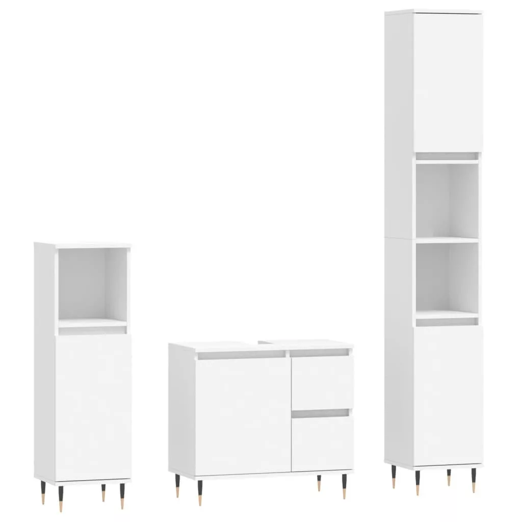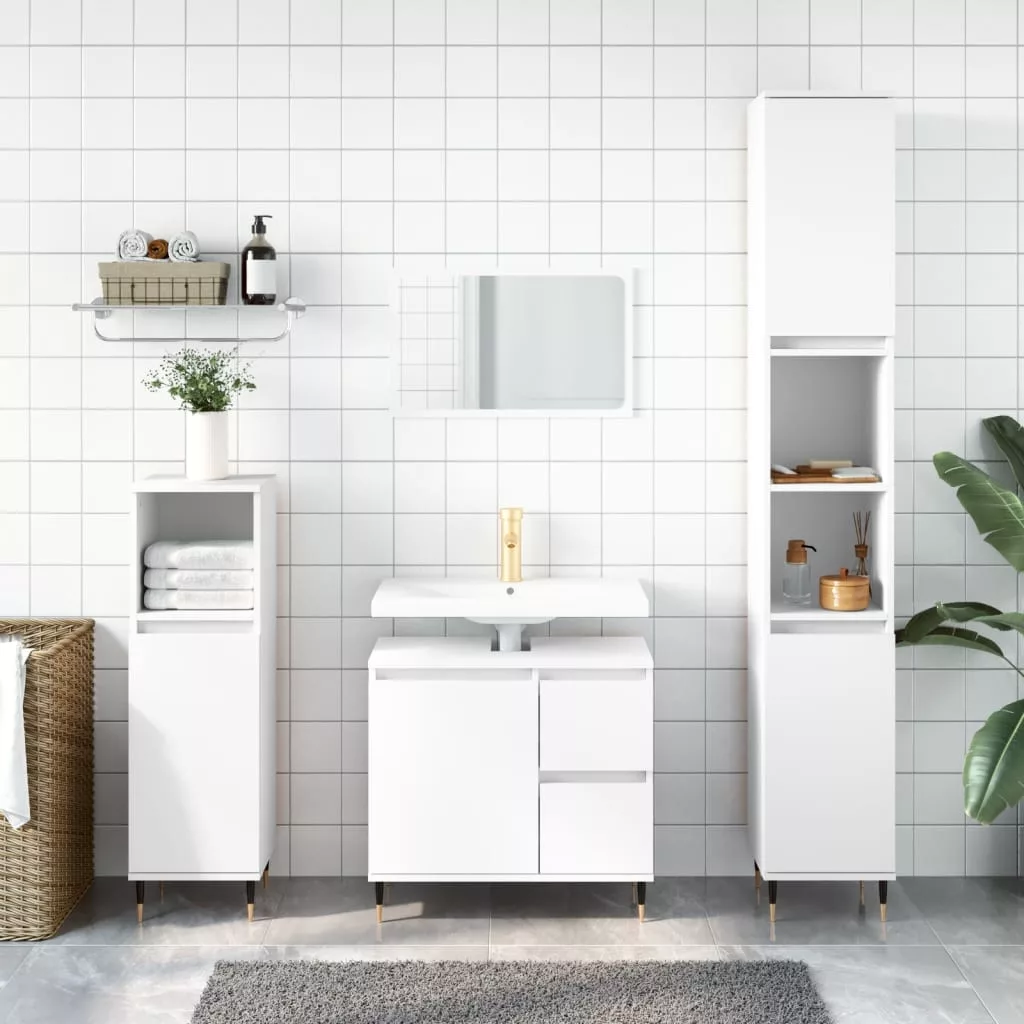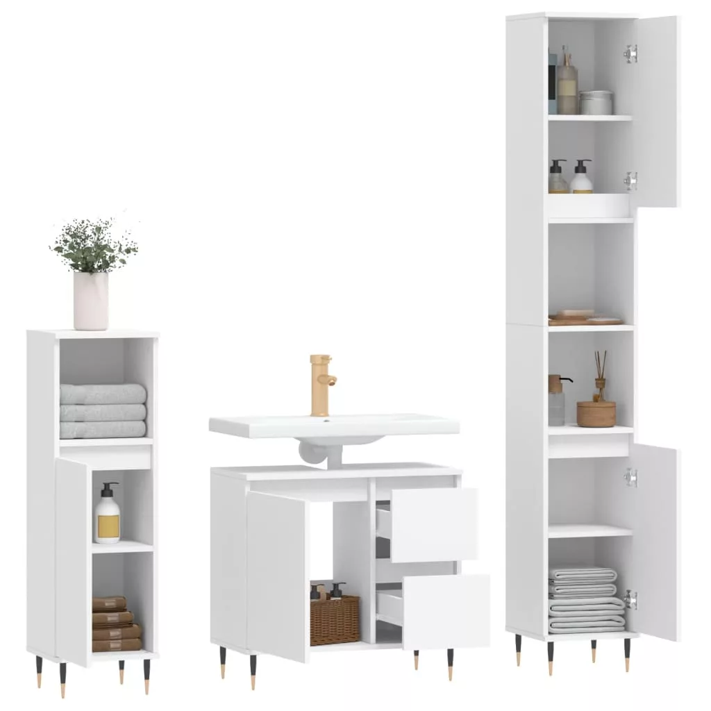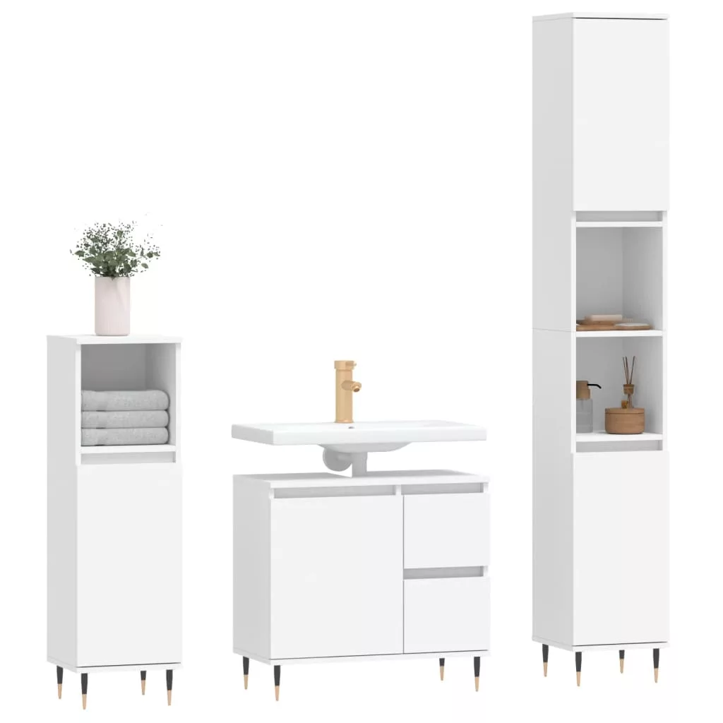 vidaXL 3 részes fehér szerelt fa fürdőszobai bútorszett