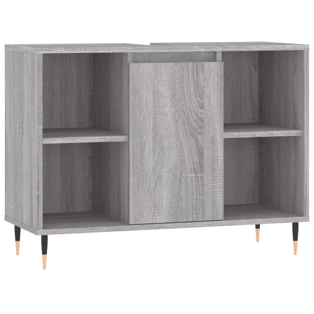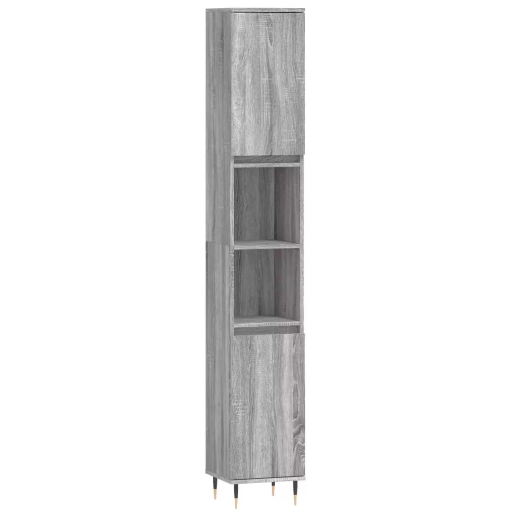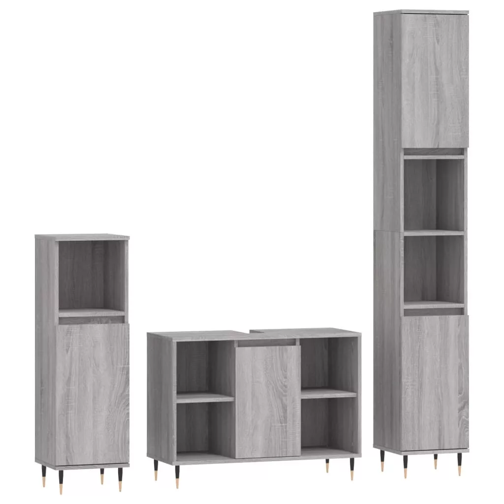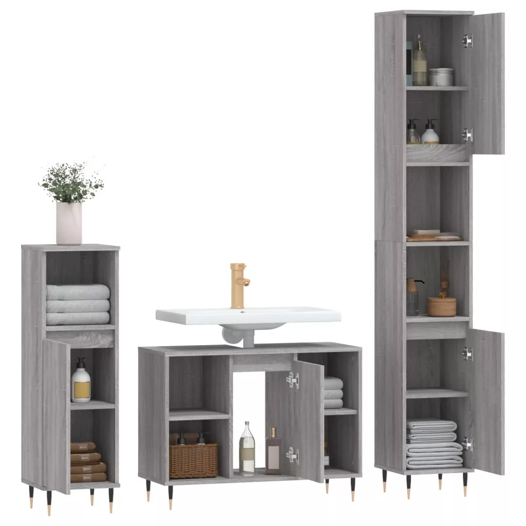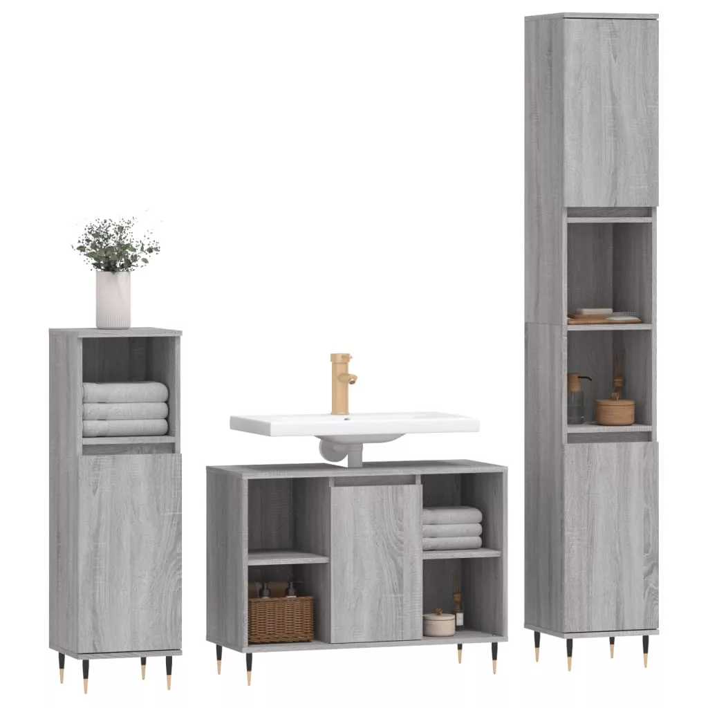 vidaXL 3 részes szürke sonoma színű szerelt fa fürdőszobai bútorszett