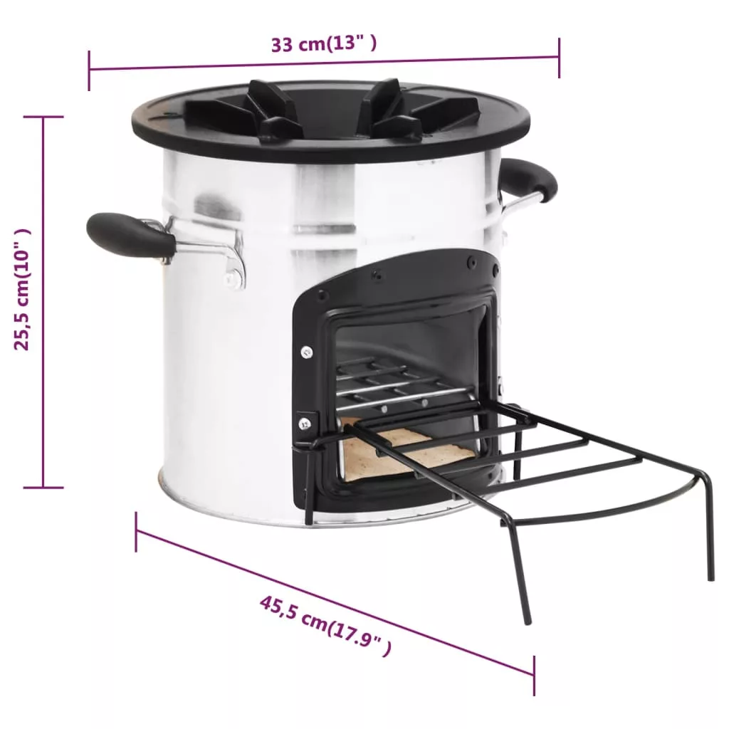 Ez a fatüzelésű kempingtűzhely főzőeszközként szolgál kültéri tevékenységekhez, hidegebb időben pedig extra meleget és kellemes hangulatot teremt.