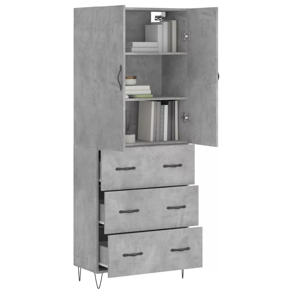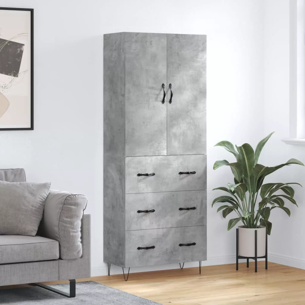 vidaXL betonszürke szerelt fa magasszekrény 69,5 x 34 x 180 cm