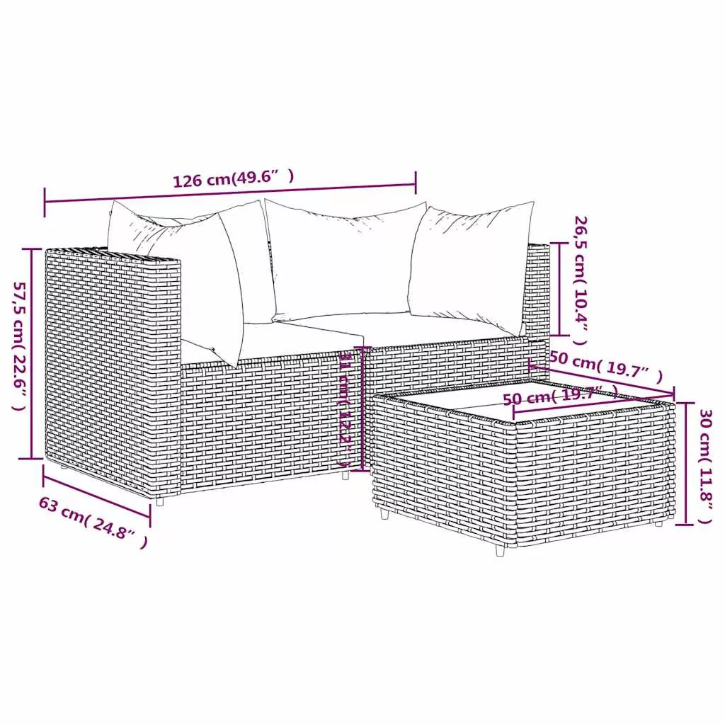 - Anyaga: PE rattan, porszórt acél, szövet (100% poliészter), edzett üveg
