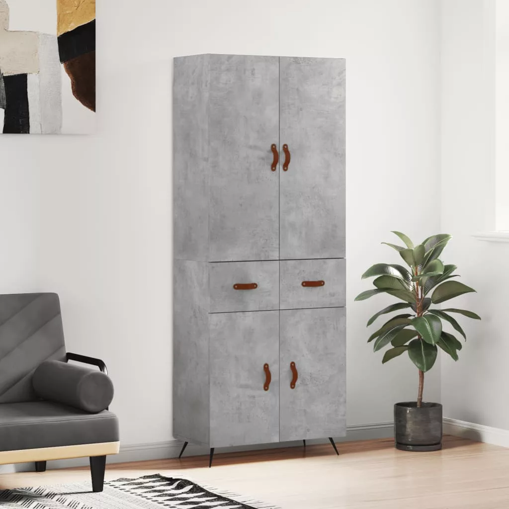 vidaXL betonszürke szerelt fa magasszekrény 69,5 x 34 x 180 cm