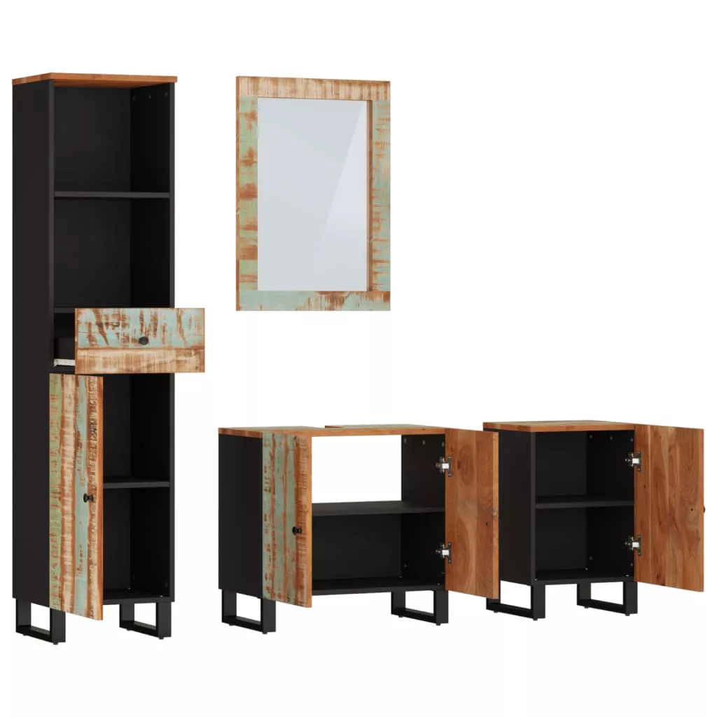 - Tömör akácfa: Ez a szekrény tömör újrahasznosított és szerelt fából készült. A tömör újrahasznosított fa újból felhasznált faanyagból áll, mint például tíkfa, mangófa, fenyőfa és bükkfa. Ezeket a faanyagokat régi épületekből, például gyárakból, fészerekből és hajókból hasznosítják újra.