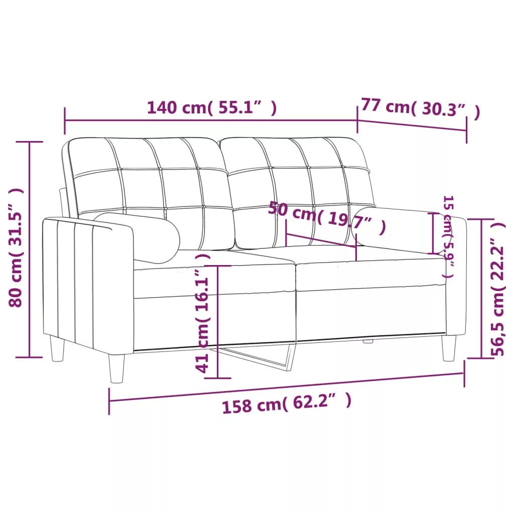 vidaXL 2 személyes tópszínű szövet kanapé díszpárnákkal 140 cm