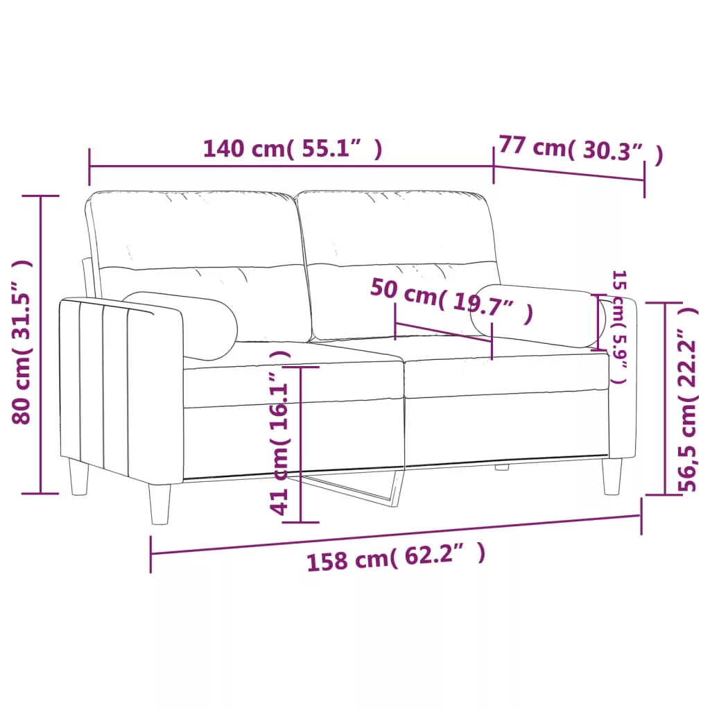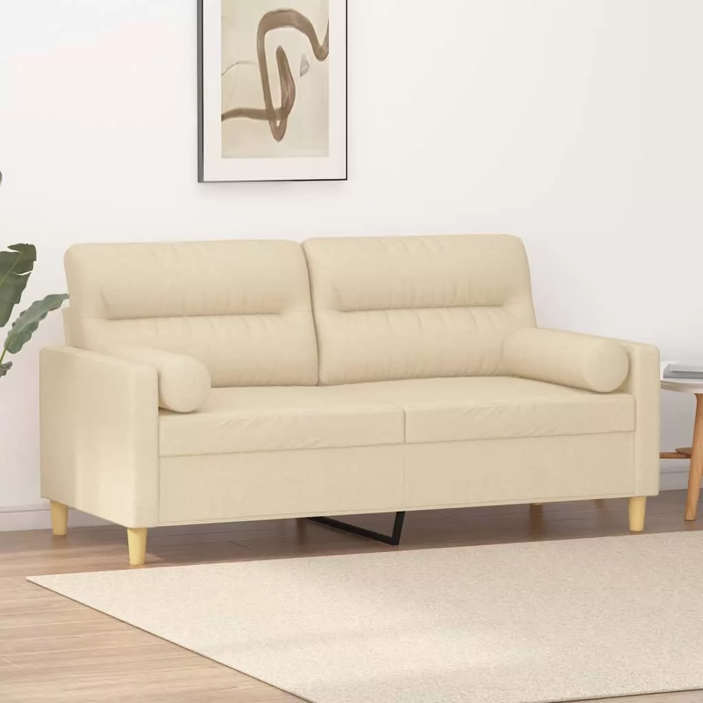 vidaXL 2 személyes krémszínű szövet kanapé díszpárnákkal 140 cm