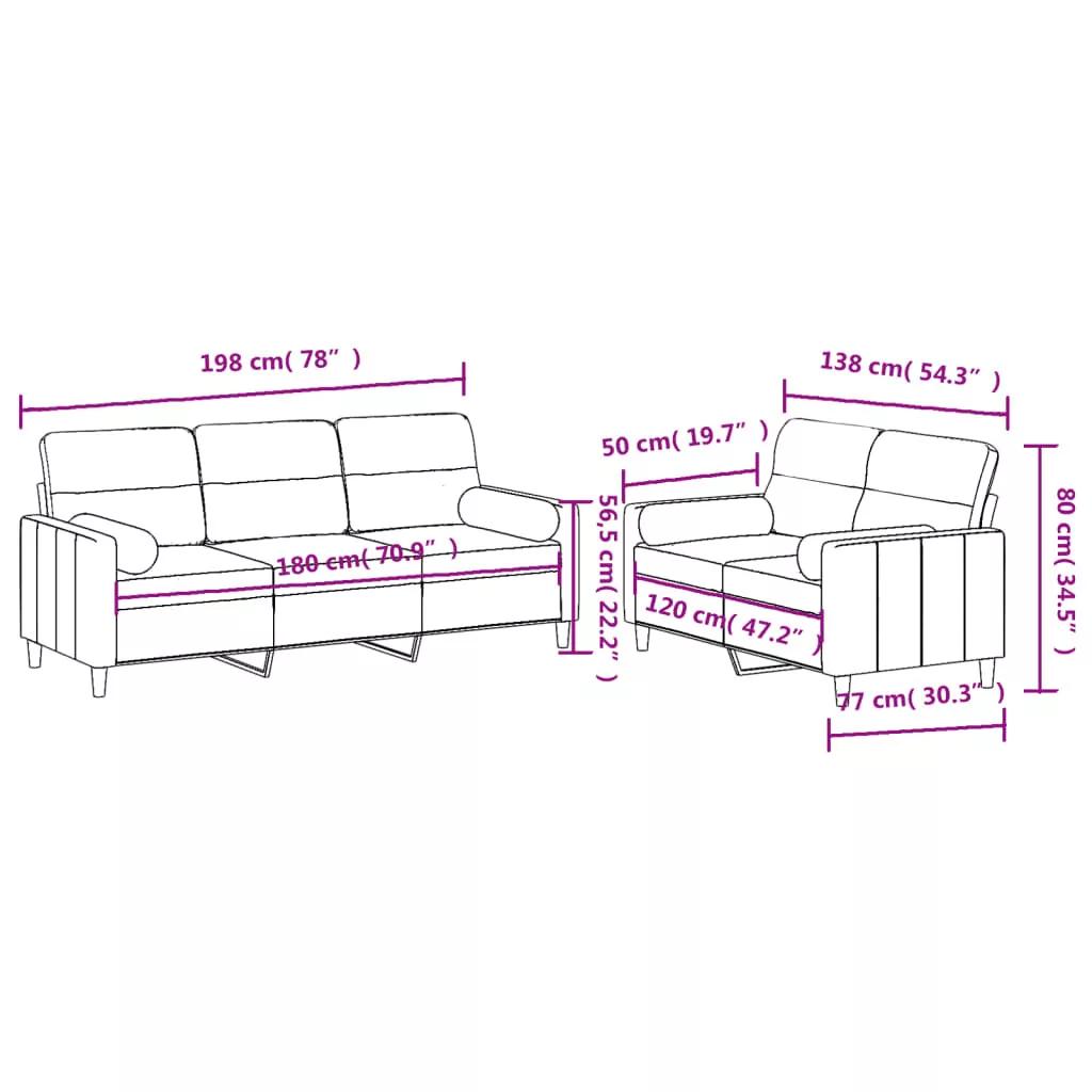 - Párnák mérete (egyenként): 15 x 50 cm (Átm. x Ma)