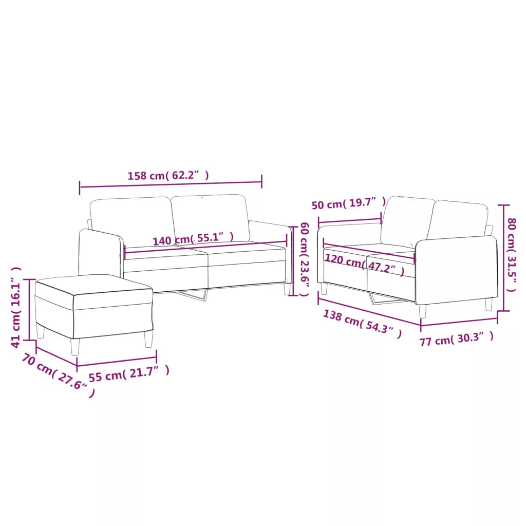 - Kétszemélyes kanapé (140 cm):