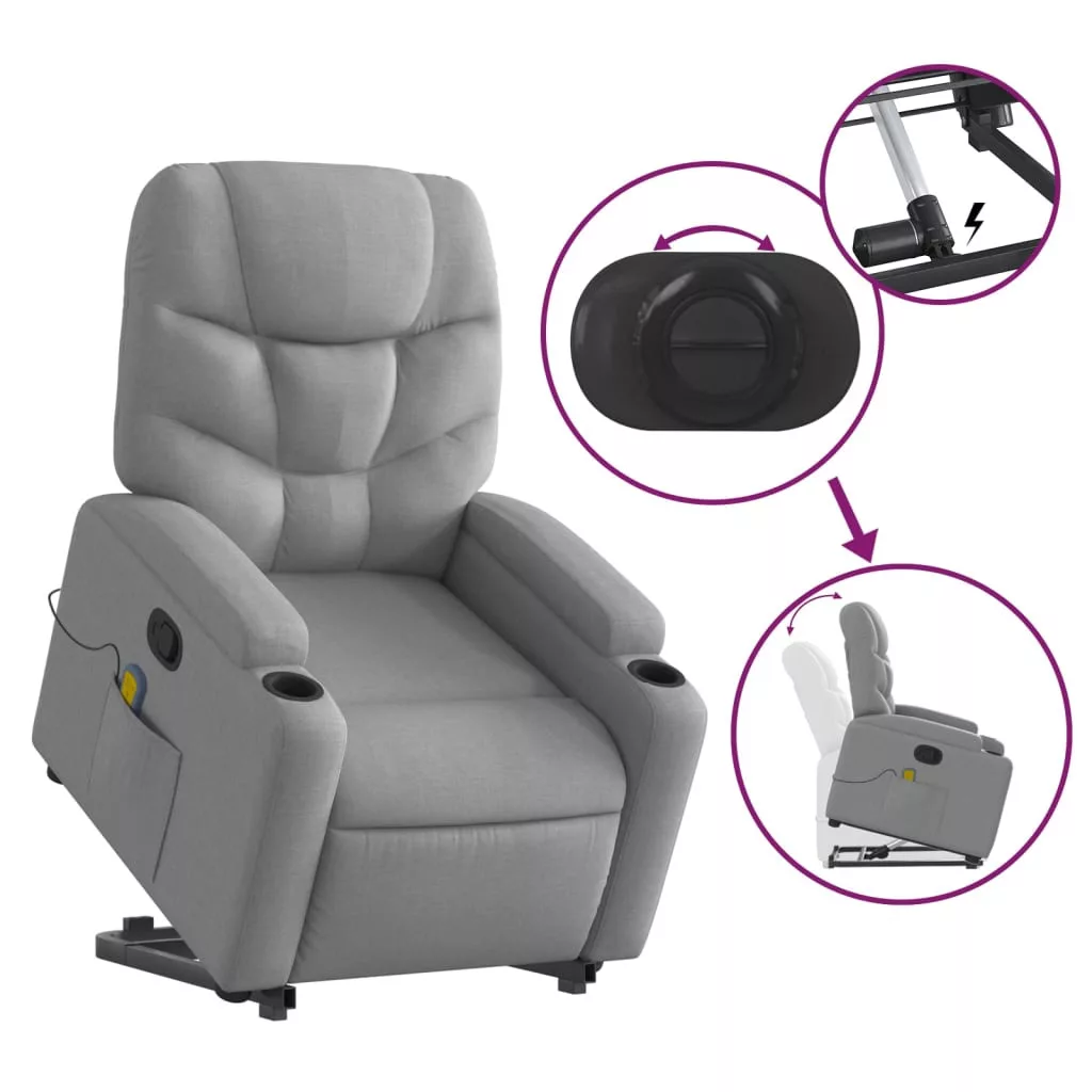 - Erős emelőfunkció: Ez az idősek számára készült fekvőfotel elektromos motorral rendelkezik az emelőfunkcióhoz. A funkciónak köszönhetően, amely az egész fotelt felfelé tolja, könnyedén állhat fel anélkül, hogy megterhelné a hátát és a térdét.