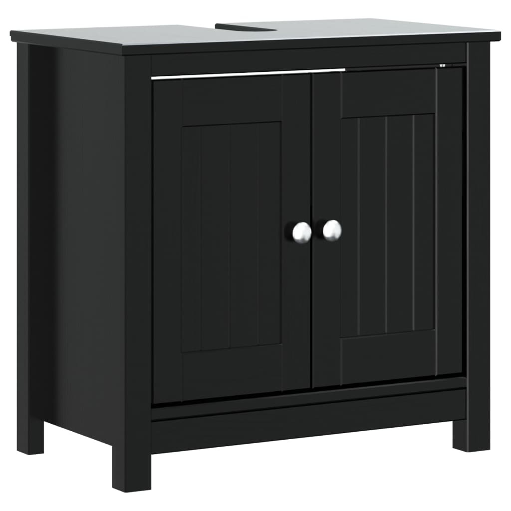 vidaXL BERG háromrészes fekete tömör fenyőfa fürdőszobabútor-garnitúra