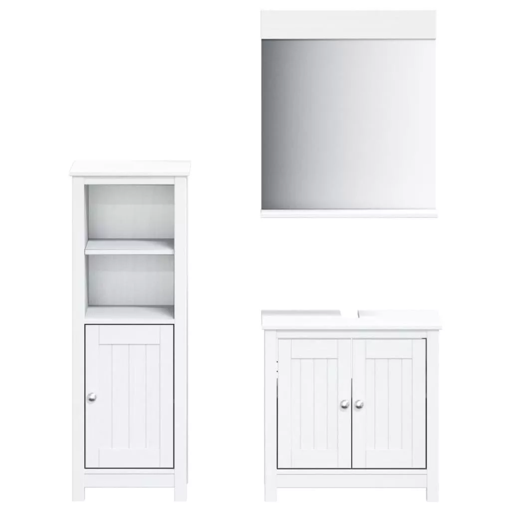 vidaXL BERG háromrészes fehér tömör fenyőfa fürdőszobabútor-garnitúra