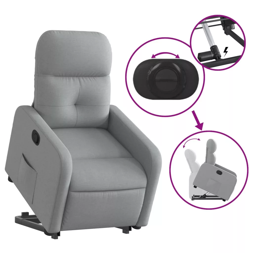 - Erős emelőfunkció: Ez az idősek számára készült fekvőfotel elektromos motorral rendelkezik az emelőfunkcióhoz. A funkciónak köszönhetően, amely az egész fotelt felfelé tolja, könnyedén állhat fel anélkül, hogy megterhelné a hátát és a térdét.