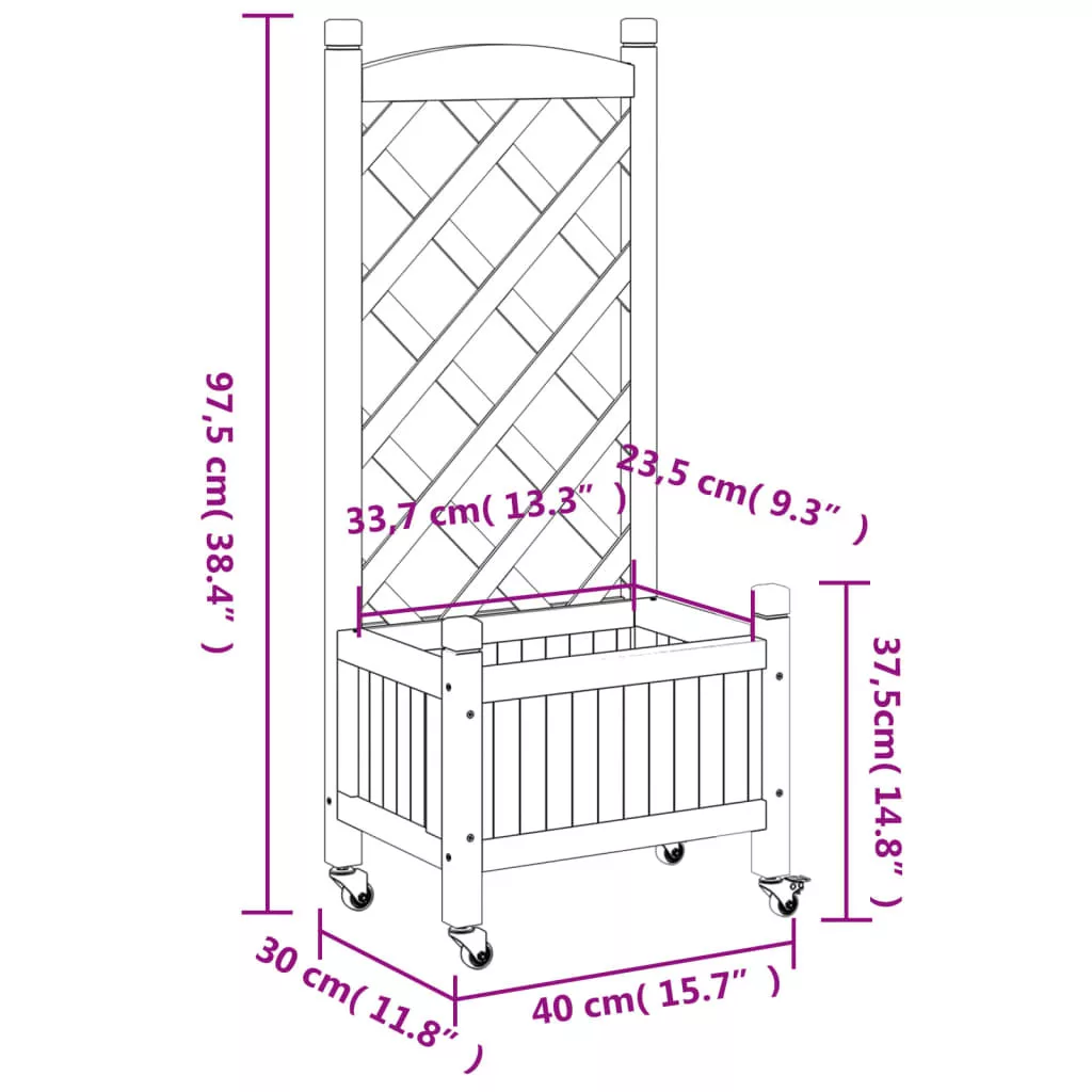 Ez a rácsos és kerekes fa ültetőláda kiváló választás a kertben, az udvaron és a teraszon a növények futtatásához.