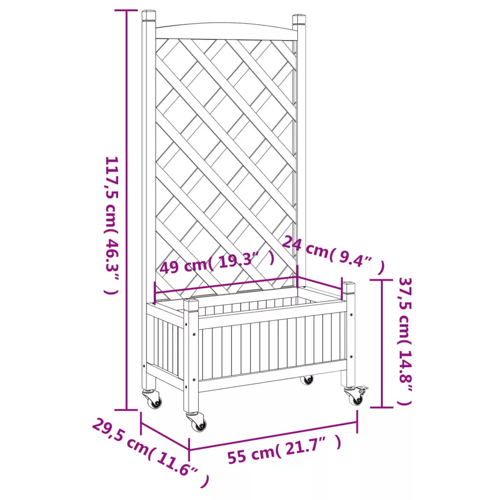 Ez a rácsos és kerekes fa ültetőláda kiváló választás a kertben, az udvaron és a teraszon a növények futtatásához.