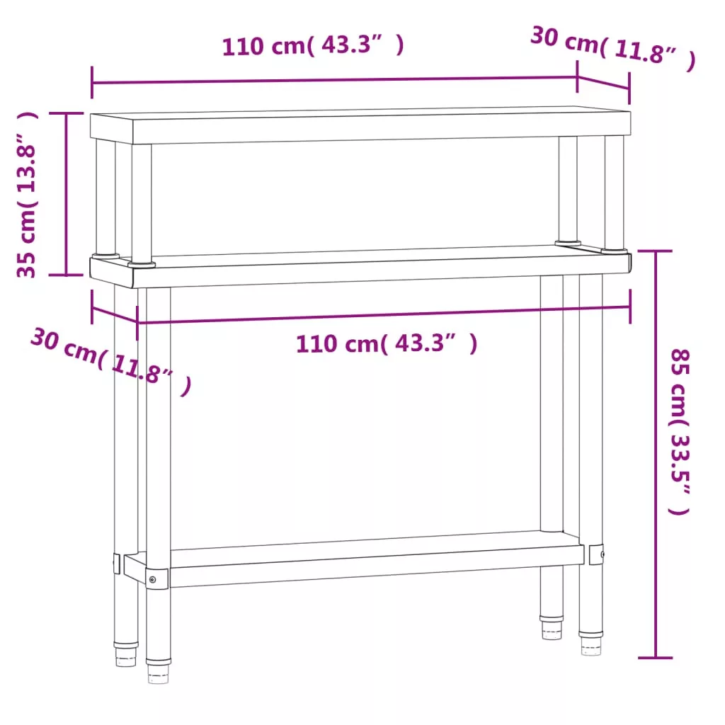 - Bőséges munkahely: A rozsdamentes acél munkaasztal alsó és felső polccal rendelkezik a személyre szabott tárolás érdekében, bőséges tárolóhelyet biztosítva mikrohullámú sütőjének, konyhai edényeinek vagy bármilyen más eszköznek, amelyre szüksége lehet.