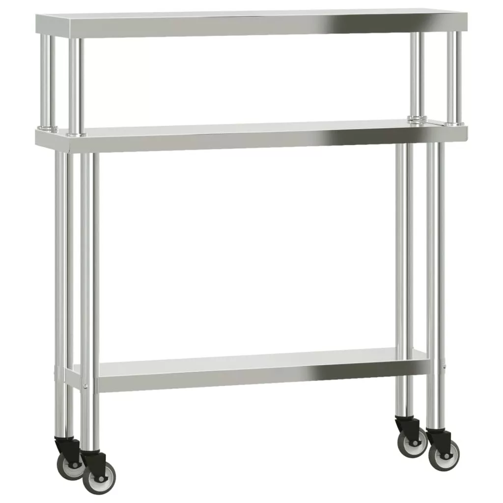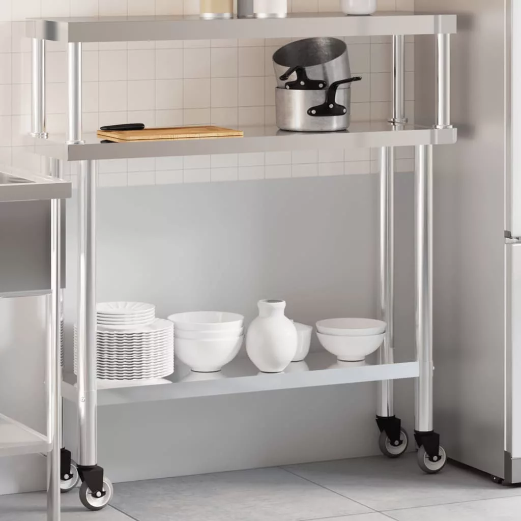 - Bőséges munkahely: A rozsdamentes acél munkaasztal alsó és felső polccal rendelkezik a személyre szabott tárolás érdekében, bőséges tárolóhelyet biztosítva mikrohullámú sütőjének, konyhai edényeinek vagy bármilyen más eszköznek, amelyre szüksége lehet.