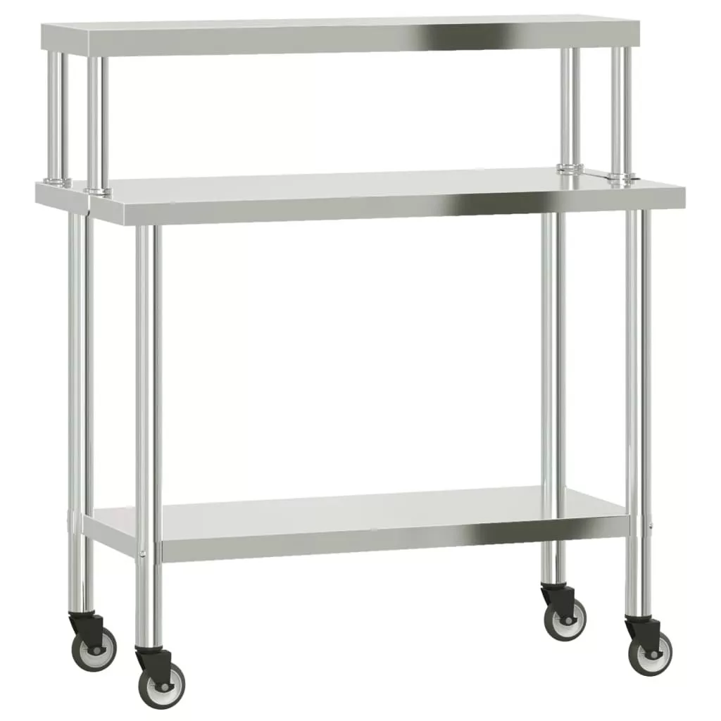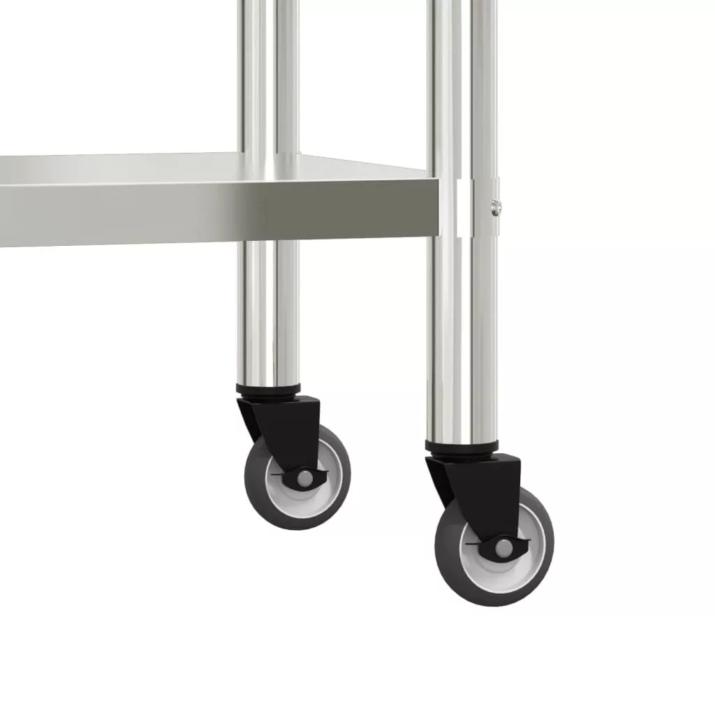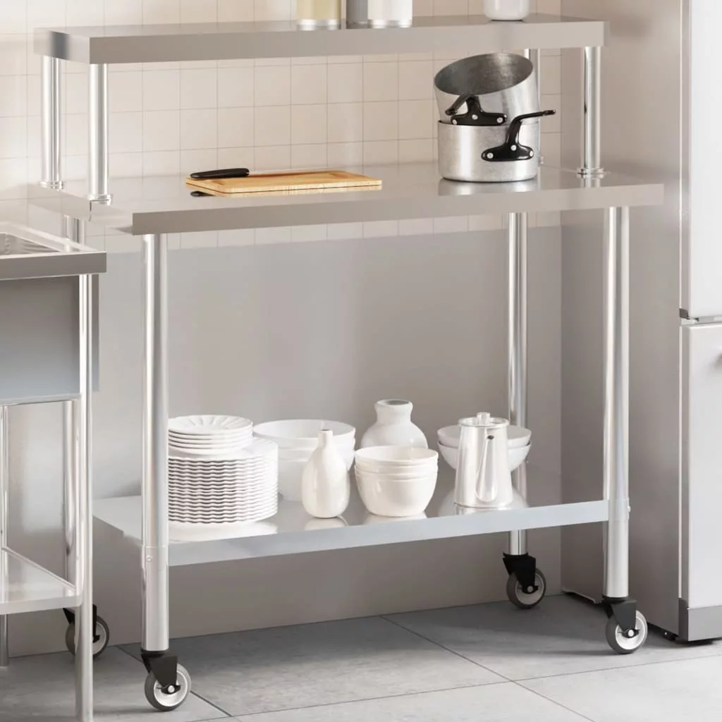 - Bőséges munkahely: A rozsdamentes acél munkaasztal alsó és felső polccal rendelkezik a személyre szabott tárolás érdekében, bőséges tárolóhelyet biztosítva mikrohullámú sütőjének, konyhai edényeinek vagy bármilyen más eszköznek, amelyre szüksége lehet.