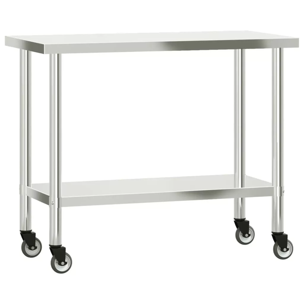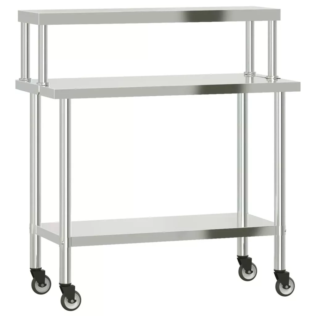 vidaXL rozsdamentes acél felső polcos konyhai munkaasztal 110x55x120cm