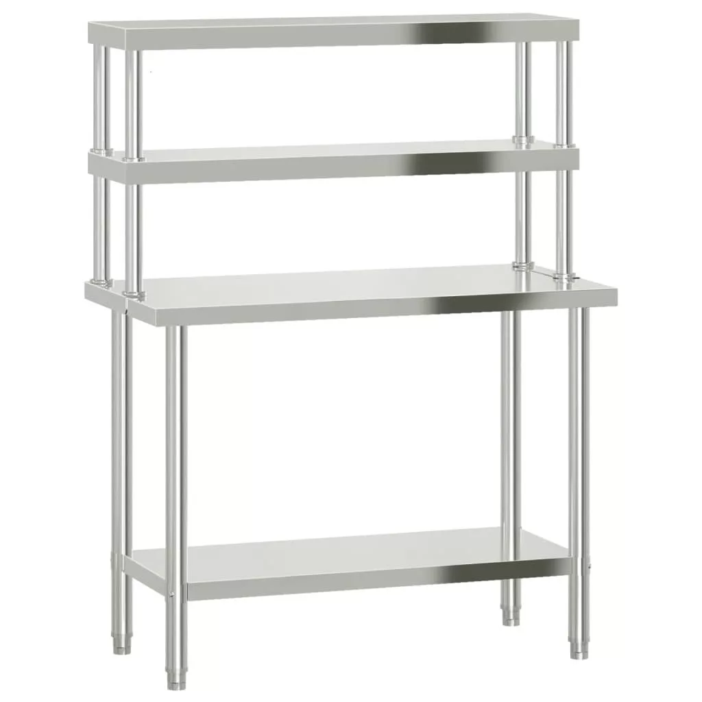 • Bőséges munkahely: A rozsdamentes acél munkaasztal alsó polccal és 2-szintes felső polccal rendelkezik a személyre szabott tárolás érdekében, bőséges tárolóhelyet biztosítva mikrohullámú sütőjének, konyhai edényeinek vagy bármilyen más eszköznek, amelyre szüksége lehet.