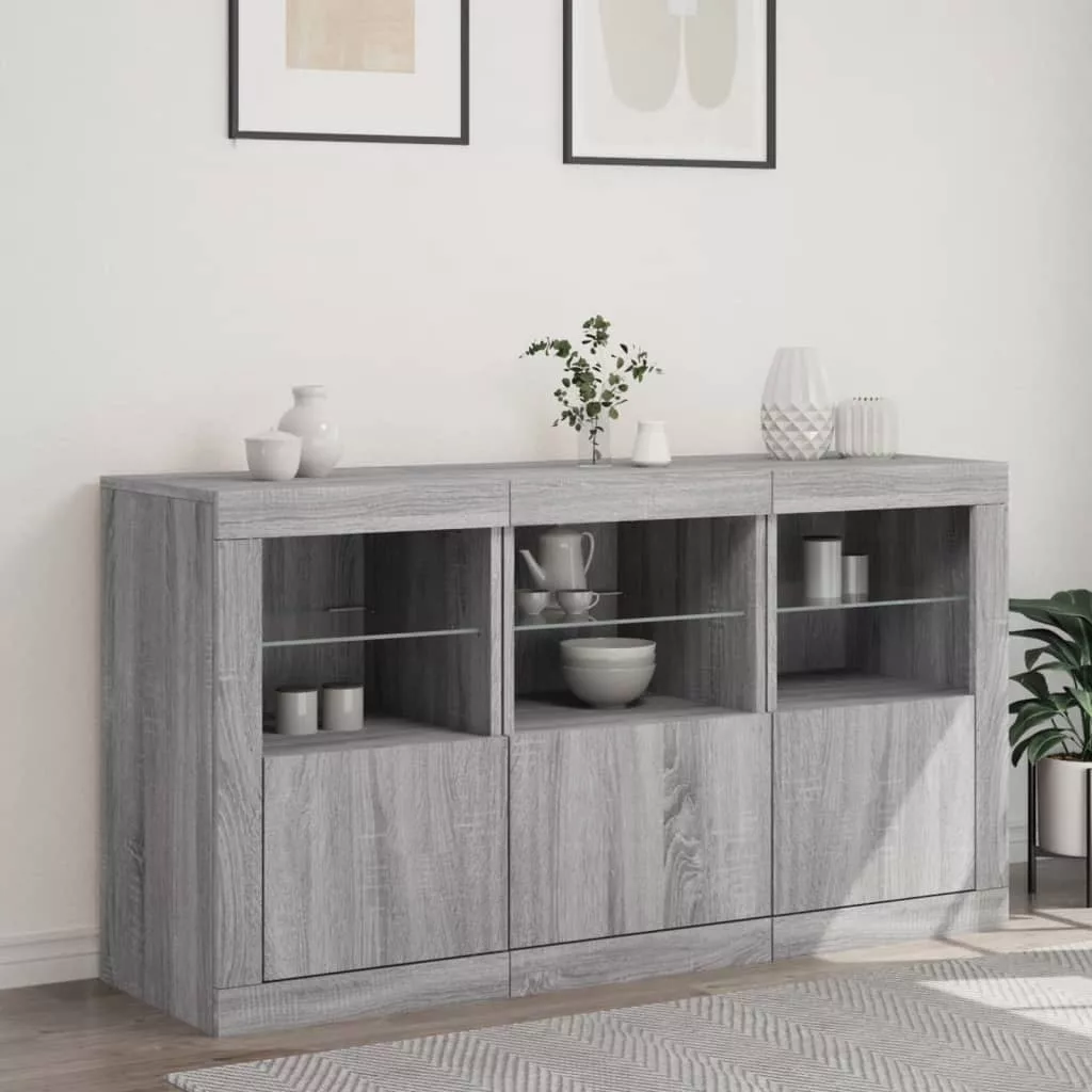 vidaXL szürke sonoma tálalószekrény LED-világítással 123 x 37 x 67 cm