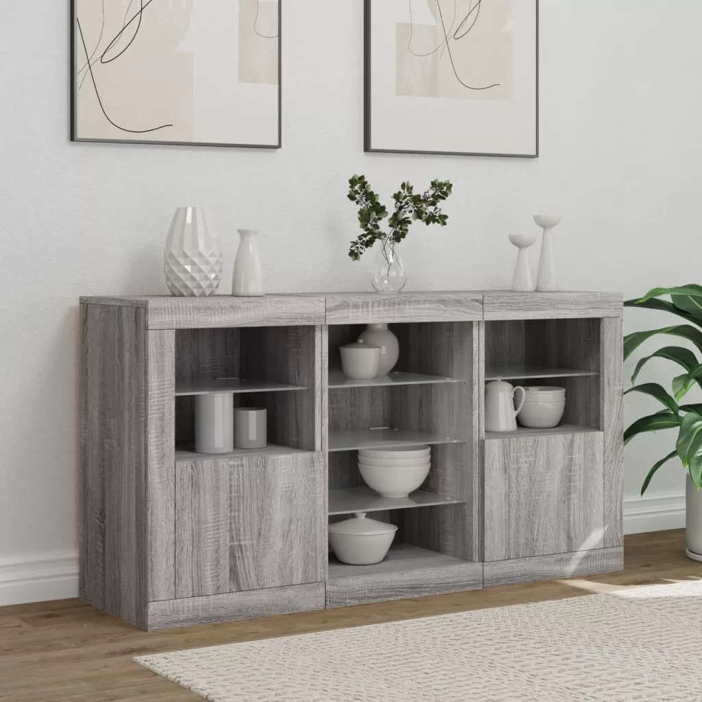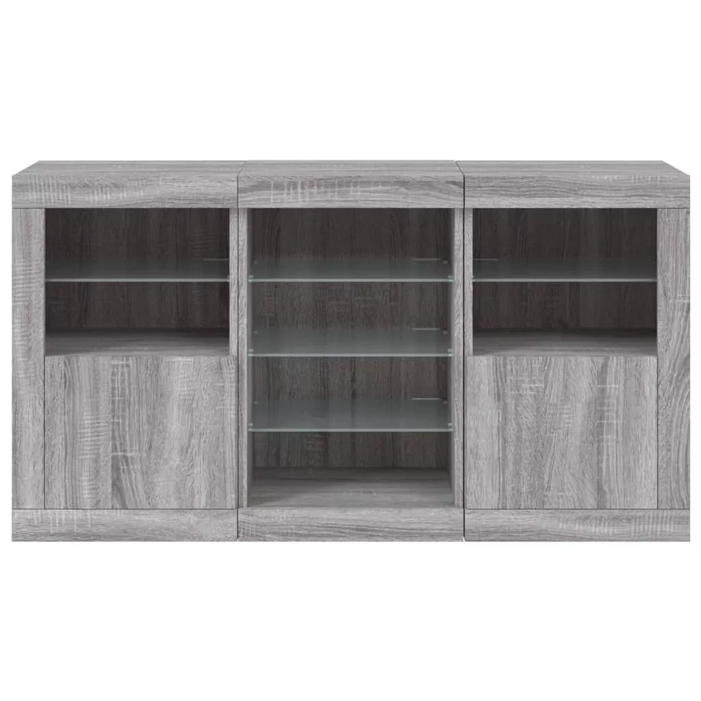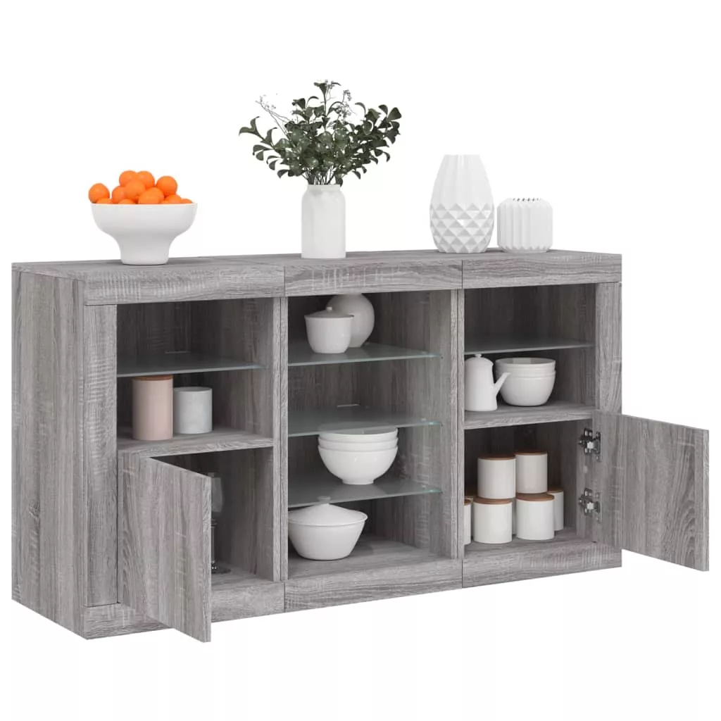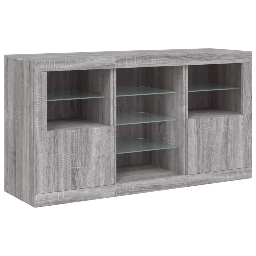 vidaXL szürke sonoma tálalószekrény LED-világítással 123 x 37 x 67 cm