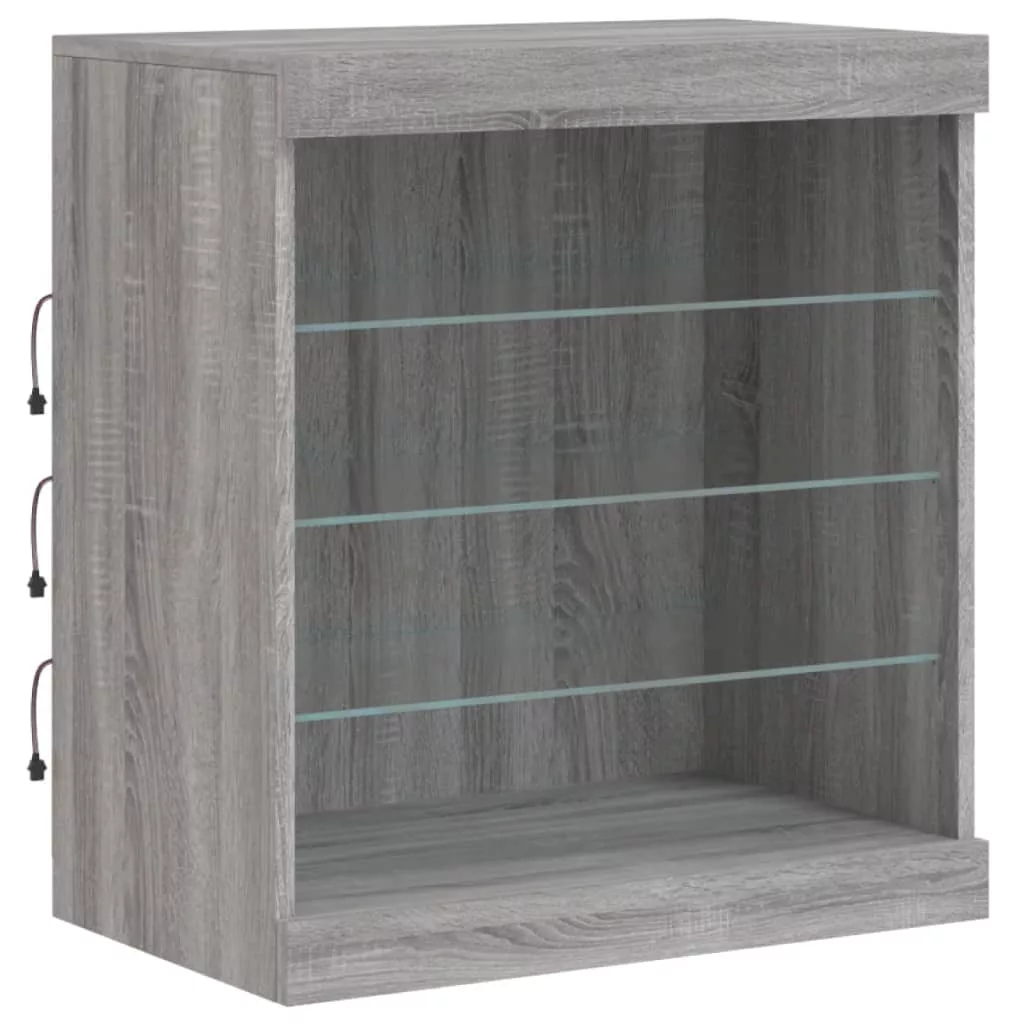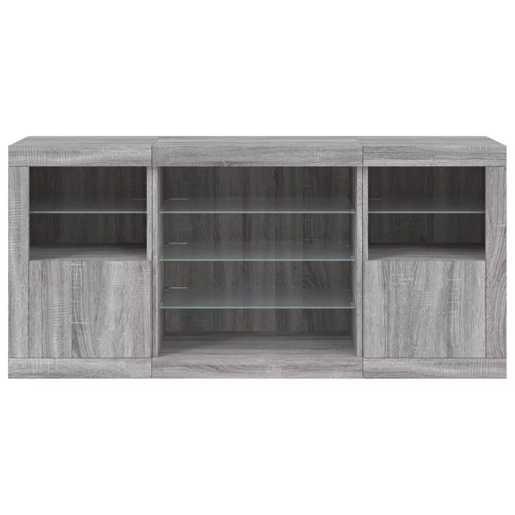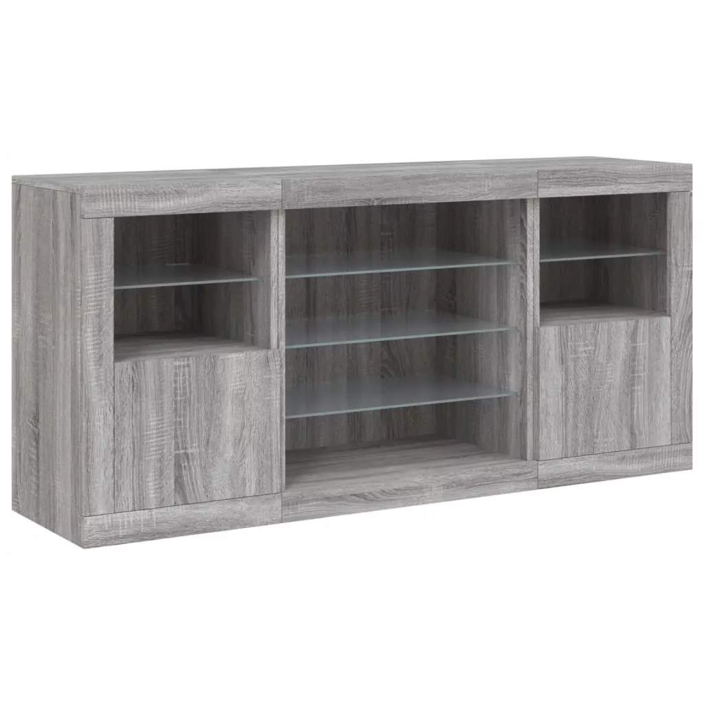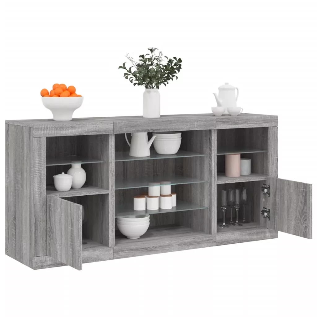 vidaXL szürke sonoma tálalószekrény LED-világítással 142,5x37x67 cm