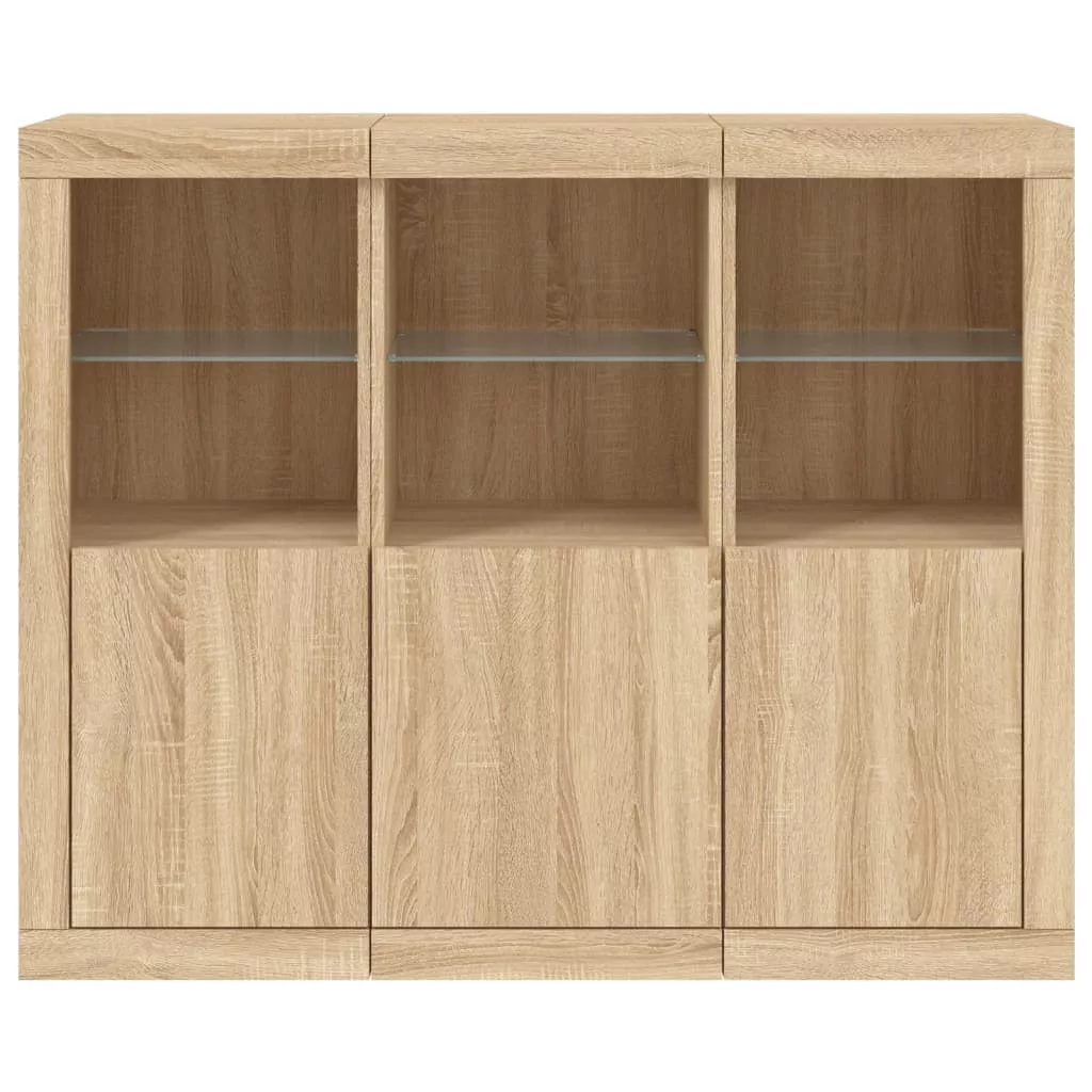 vidaXL 3 db sonoma tölgy színű szerelt fa tálalószekrény LED-ekkel