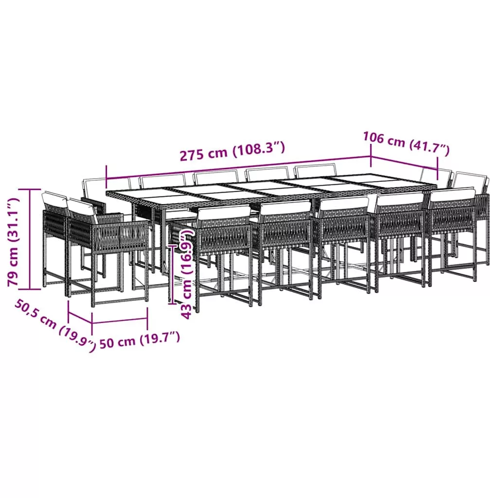 - Anyaga: polietilén rattan, porszórt acél, tömör akácfa