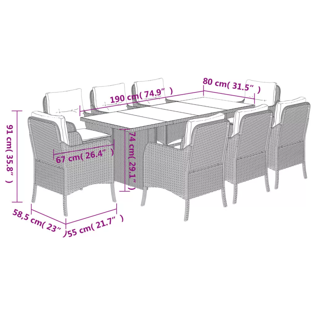- Anyaga: polietilén rattan, porszórt acélváz, edzett üveg