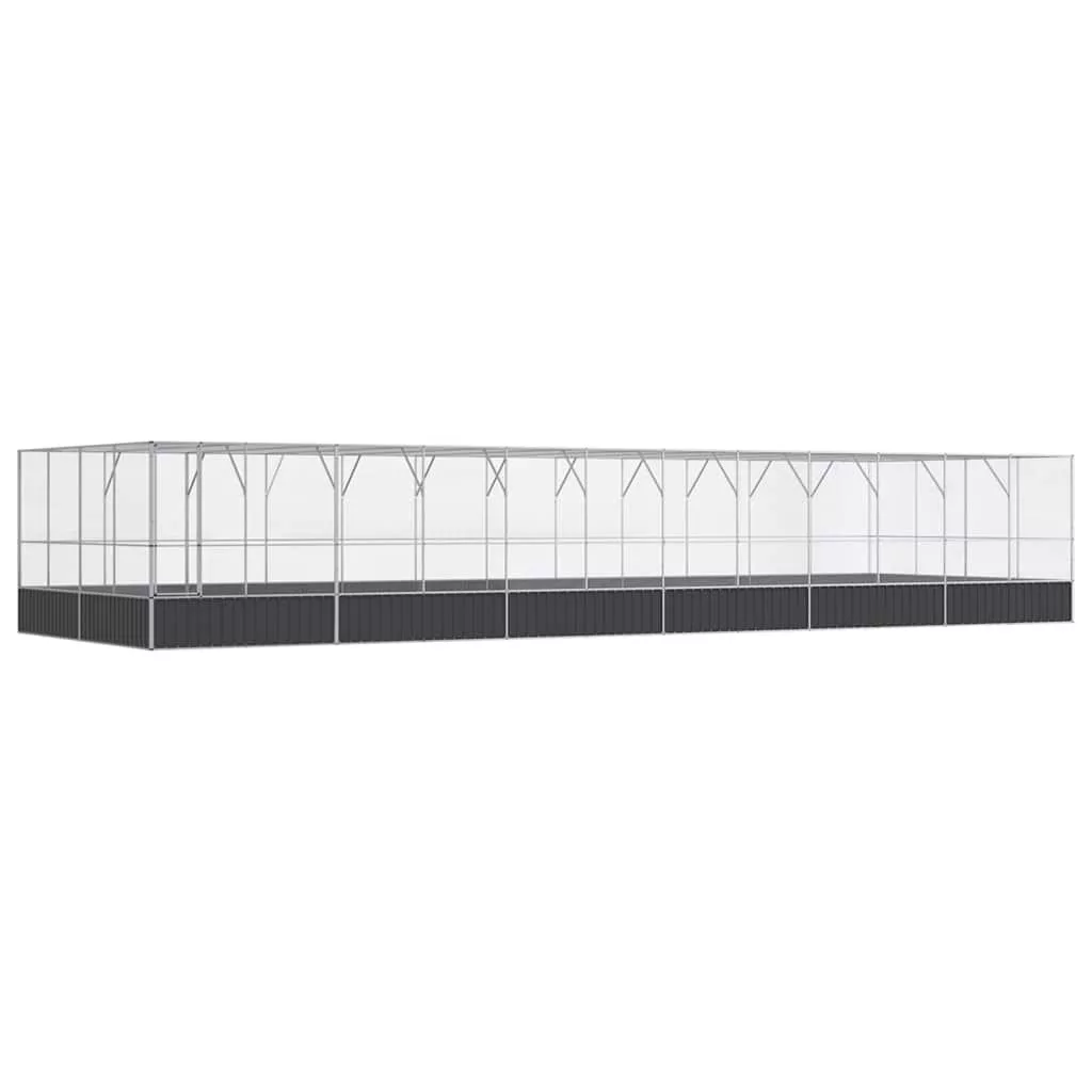 - Robusztus váz: Az acél rendkívül kemény és erős anyag. Erős szerkezetet és stabilitást biztosít. A horgonyzás jobb védelmet nyújt a korrózió ellen, és hasznos a szabadban és zord környezetben használt termékeknél. A masszív horganyzott acélszerkezetnek köszönhetően ez a madárház tartósra készült.