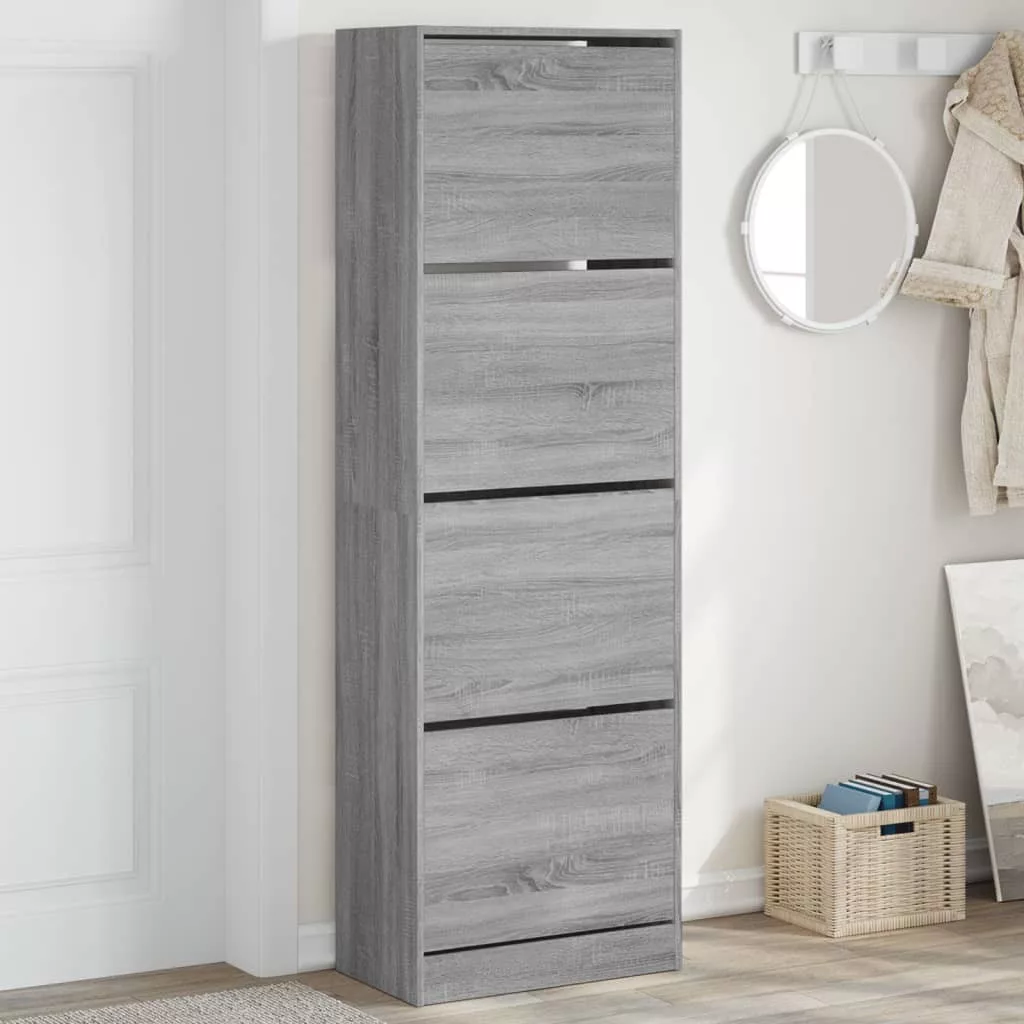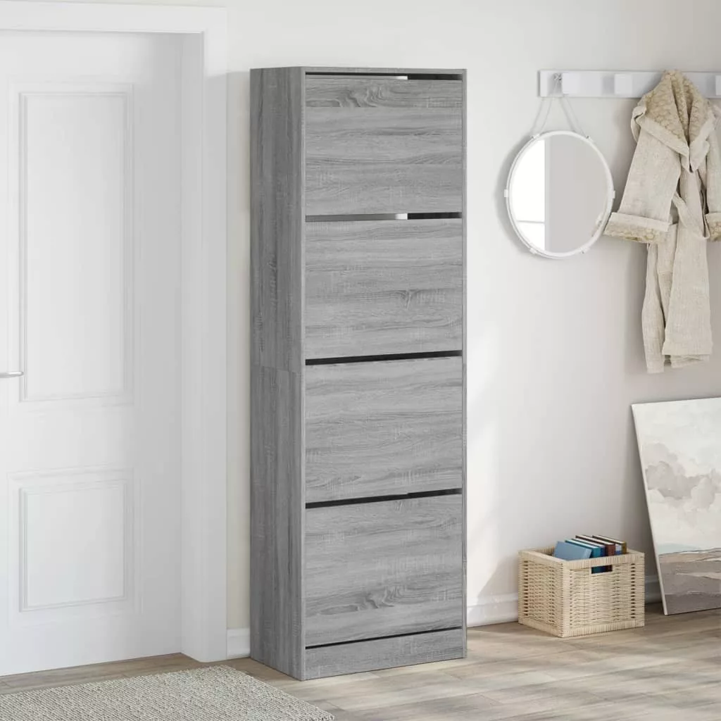 - Bőséges tárolóhely: A cipőtároló szekrényben kihajtható fiókok találhatók, amelyek elrejtik a cipőket, hogy tiszta és rendetlenségmentes teret biztosítson.
