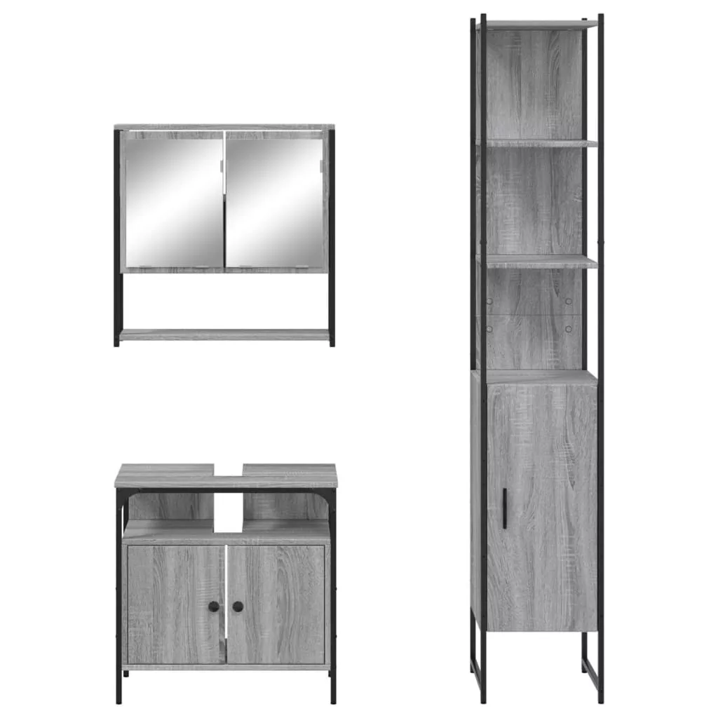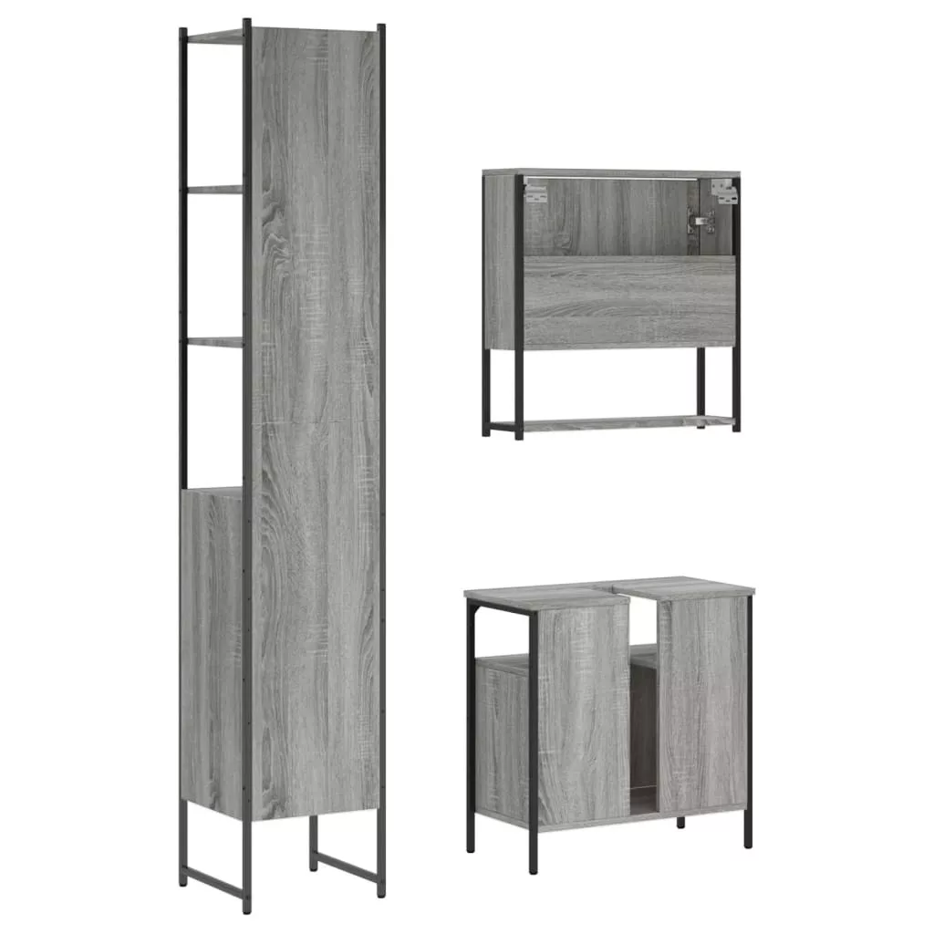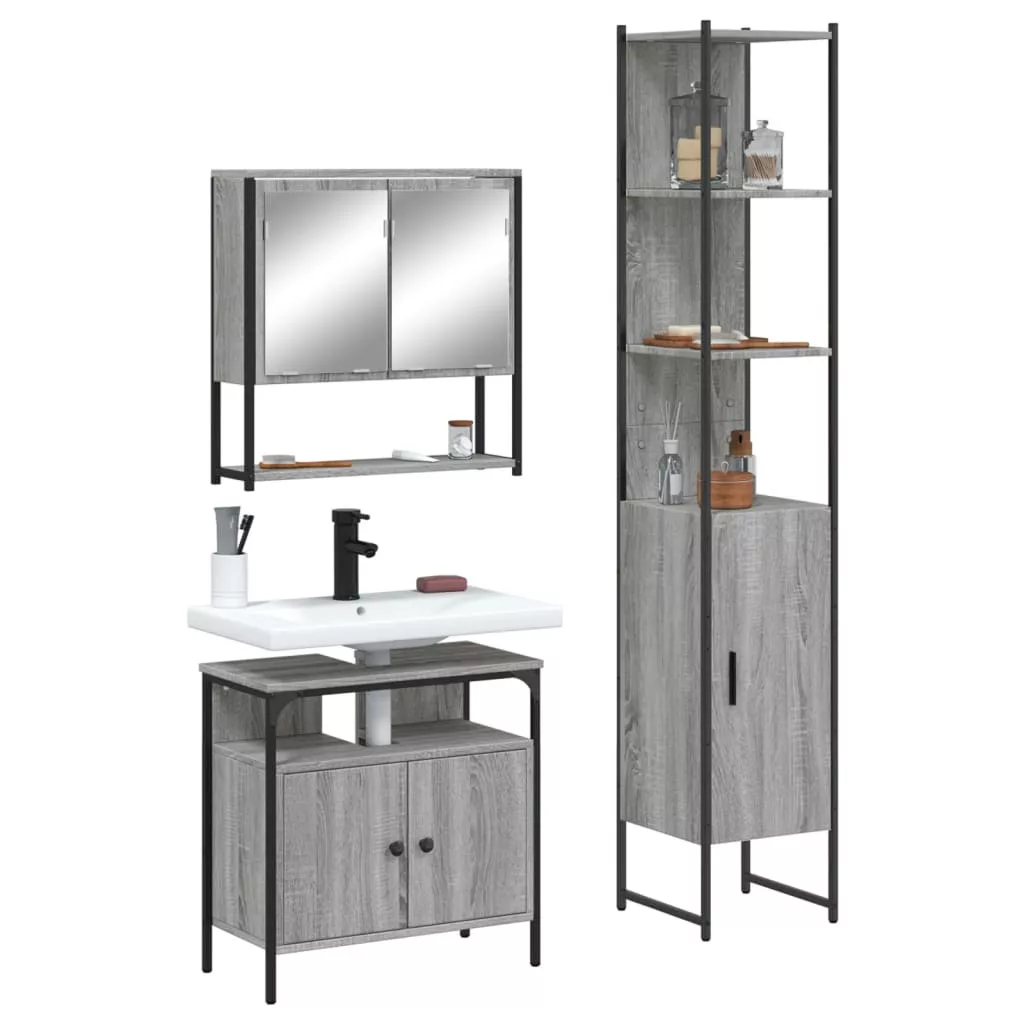 vidaXL 3 részes szürke sonoma színű szerelt fa fürdőszobai bútorszett