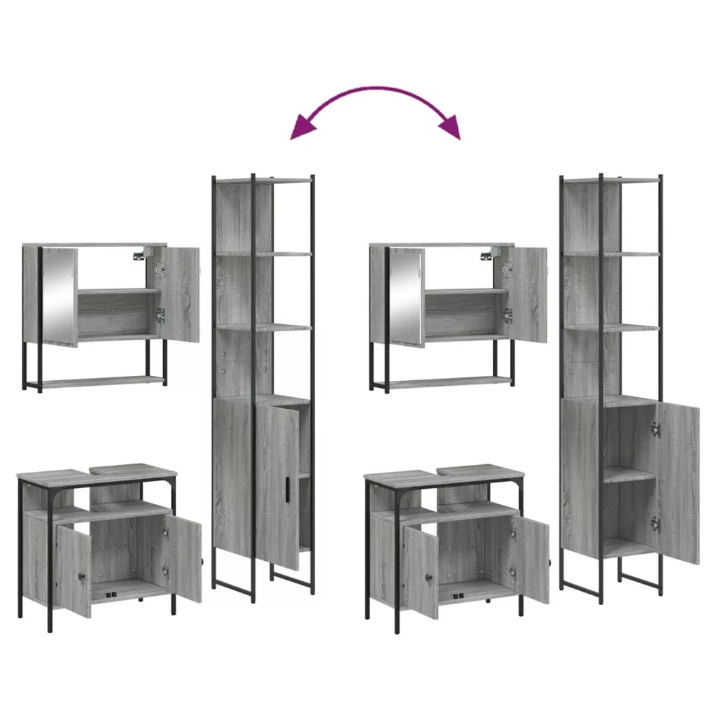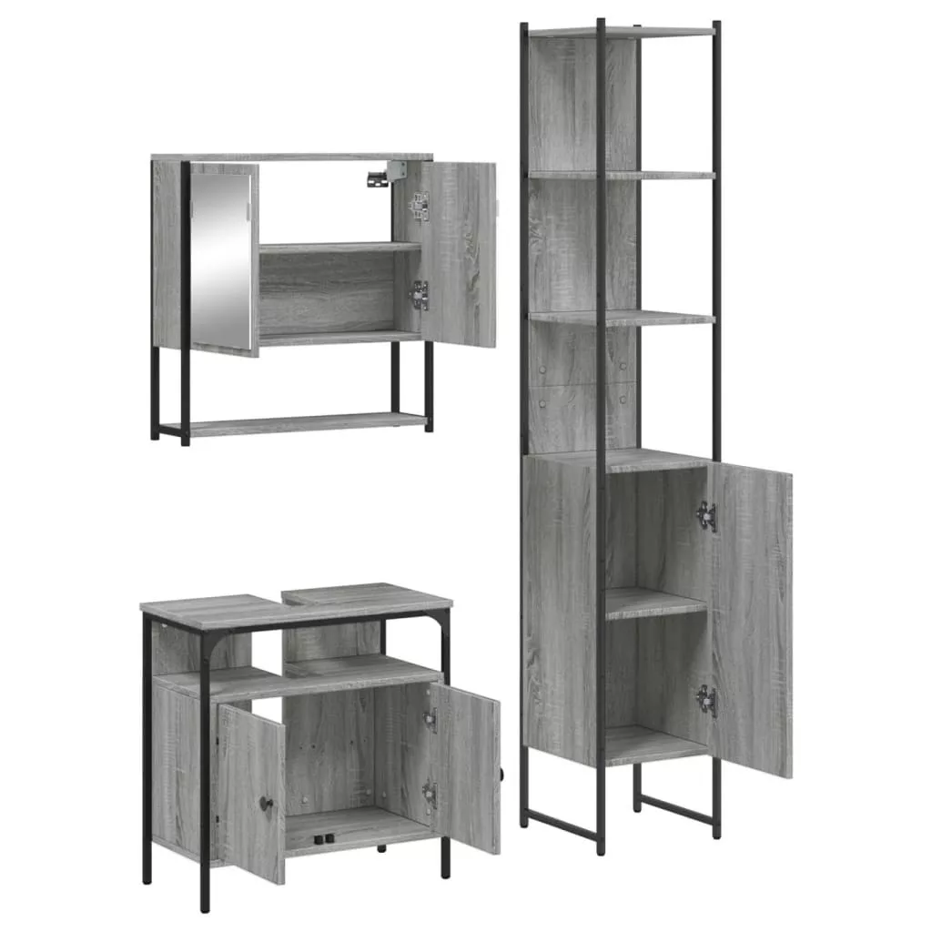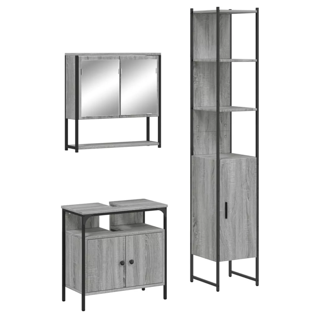 vidaXL 3 részes szürke sonoma színű szerelt fa fürdőszobai bútorszett