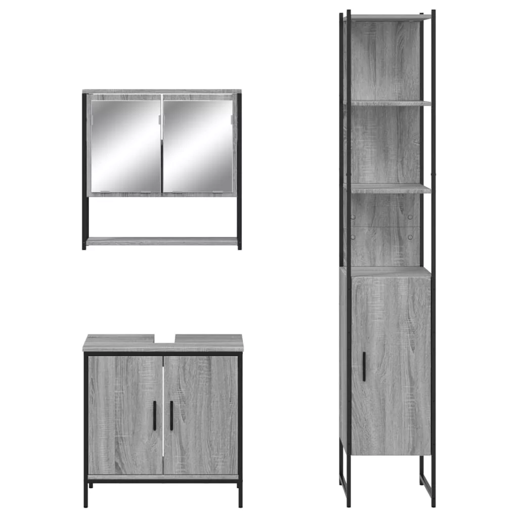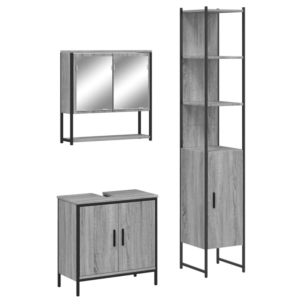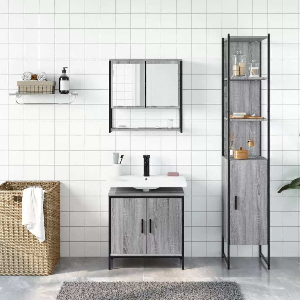 vidaXL 3 részes szürke sonoma színű szerelt fa fürdőszobai bútorszett