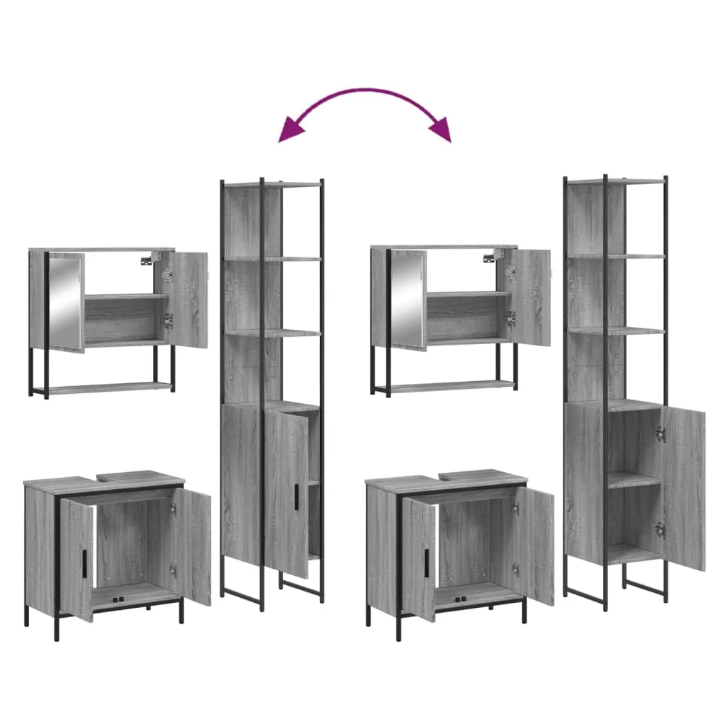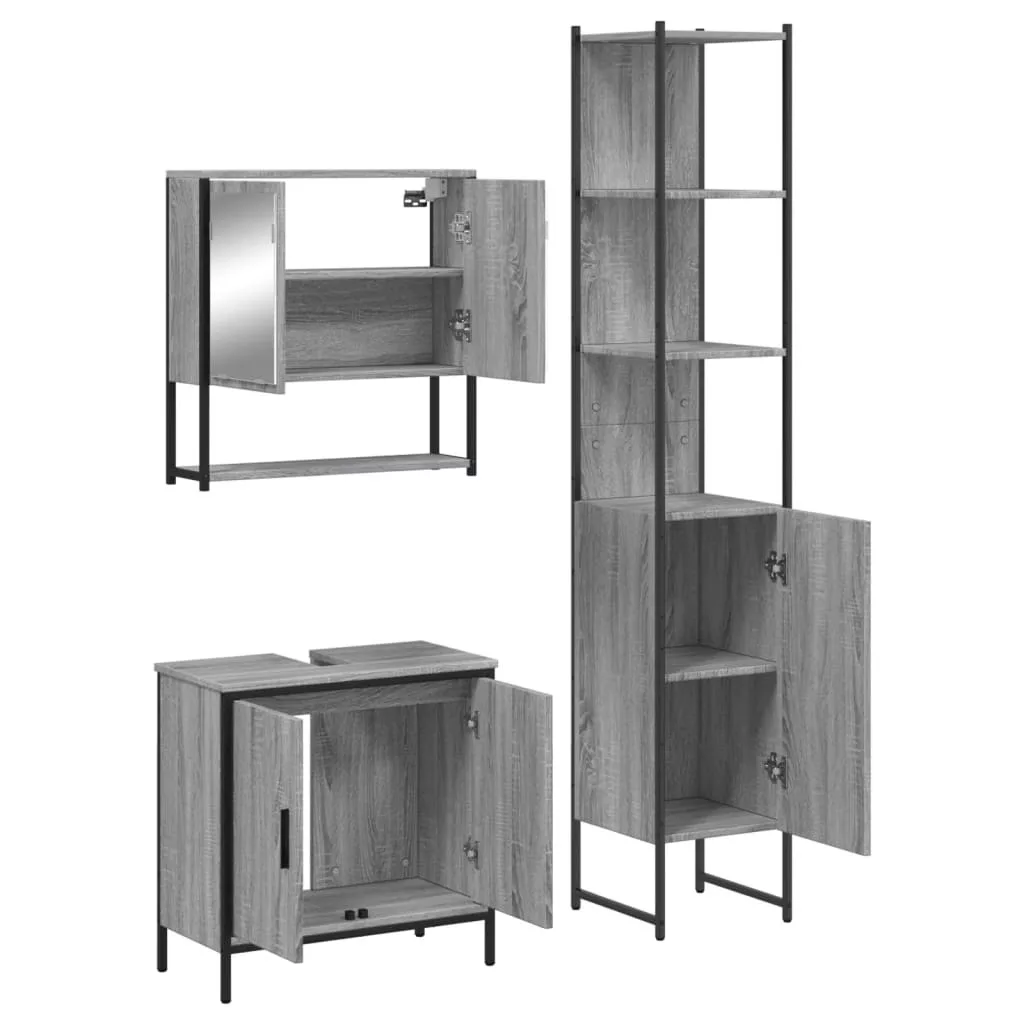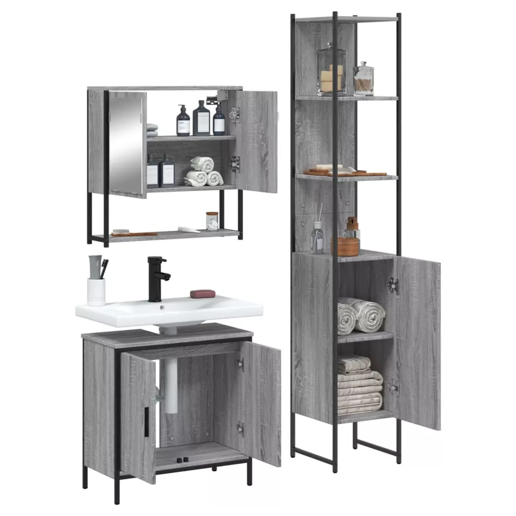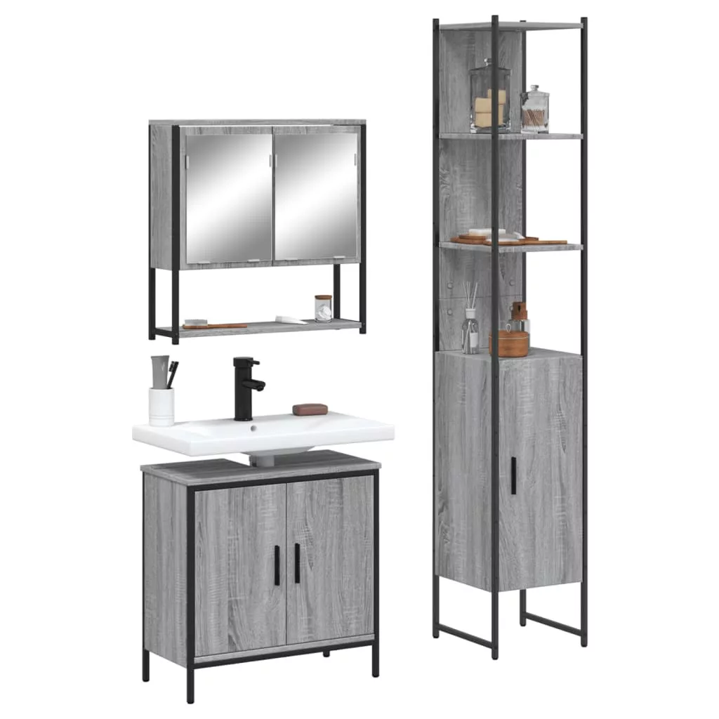vidaXL 3 részes szürke sonoma színű szerelt fa fürdőszobai bútorszett
