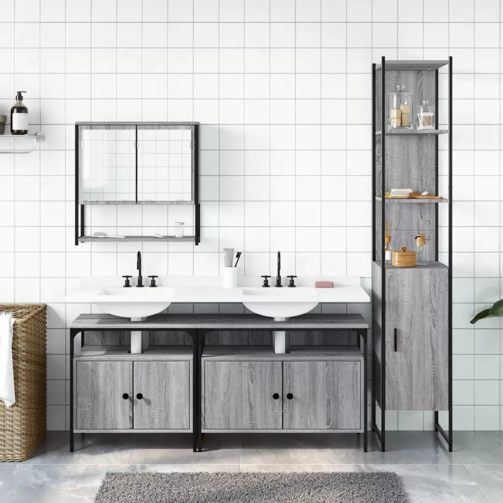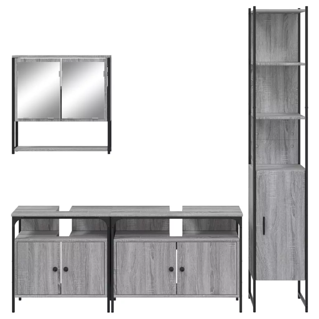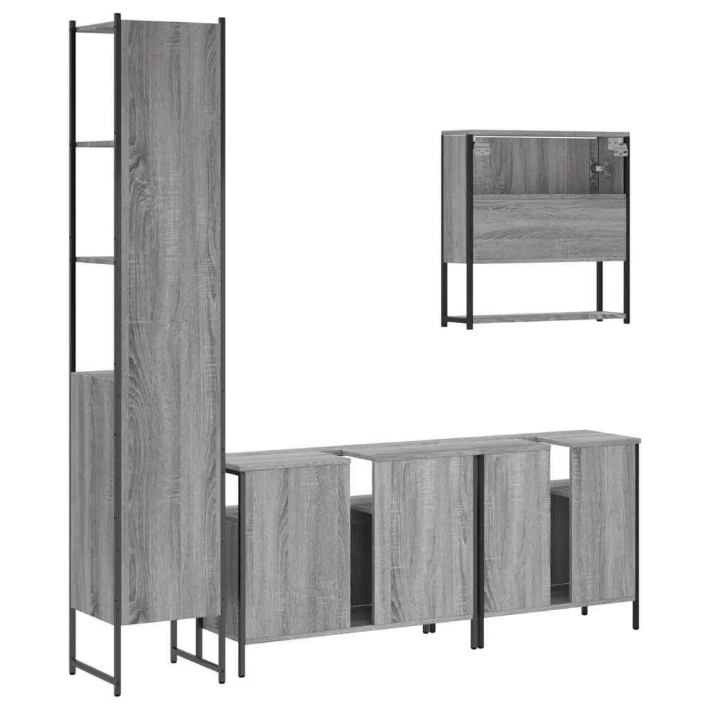 vidaXL 4 részes szürke sonoma színű szerelt fa fürdőszobai bútorszett