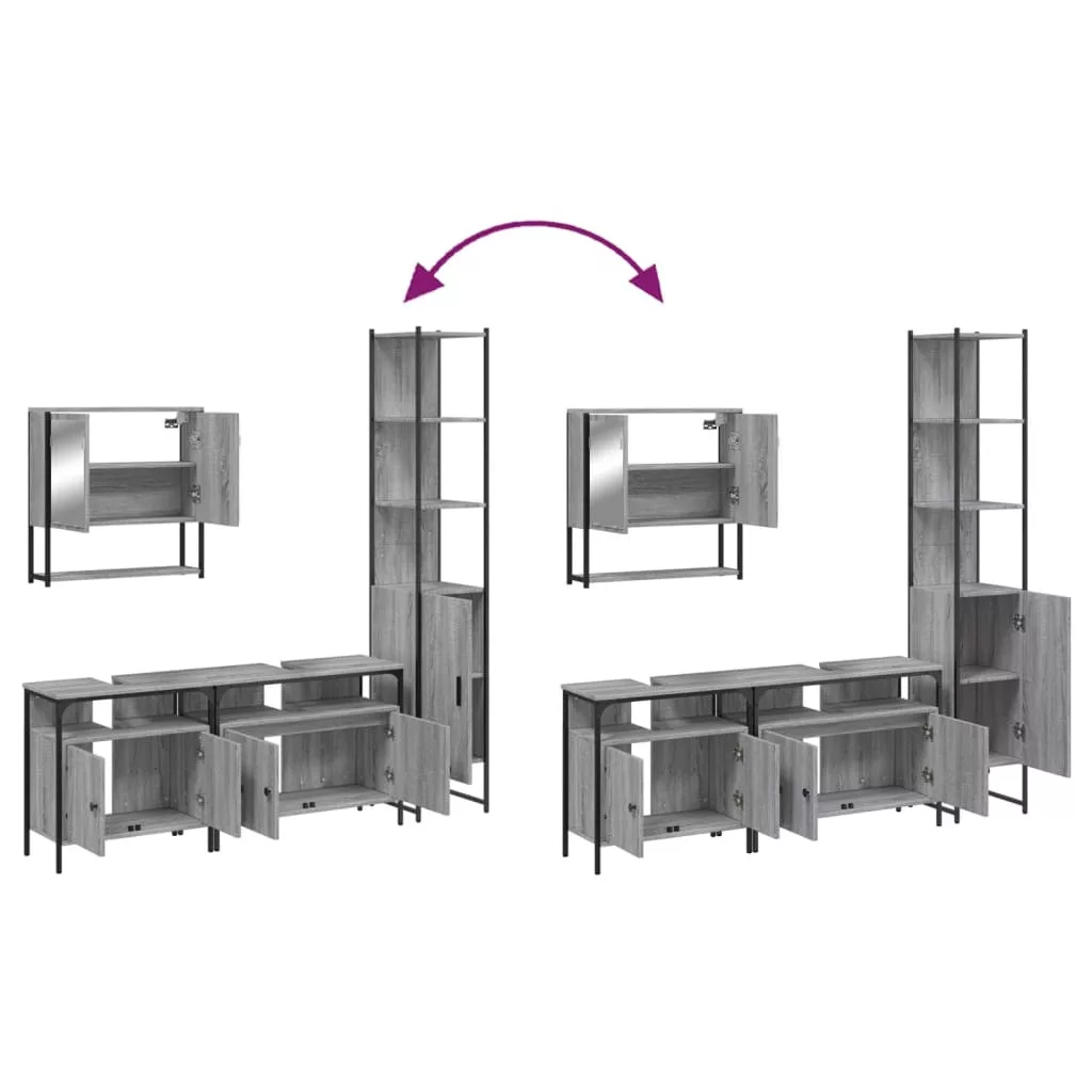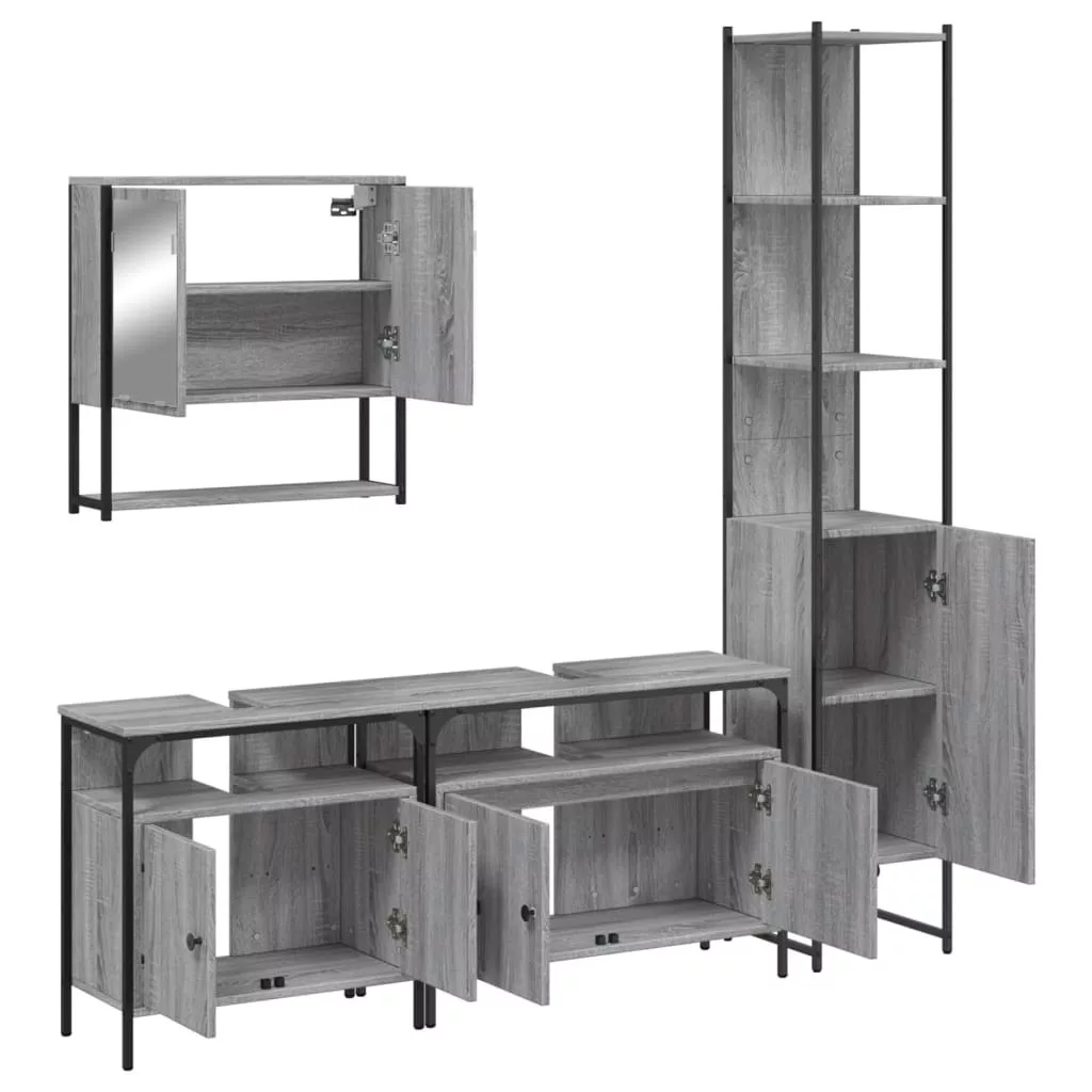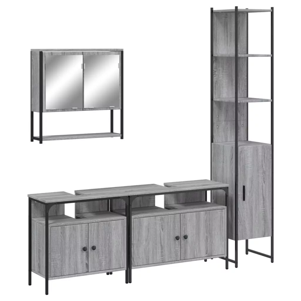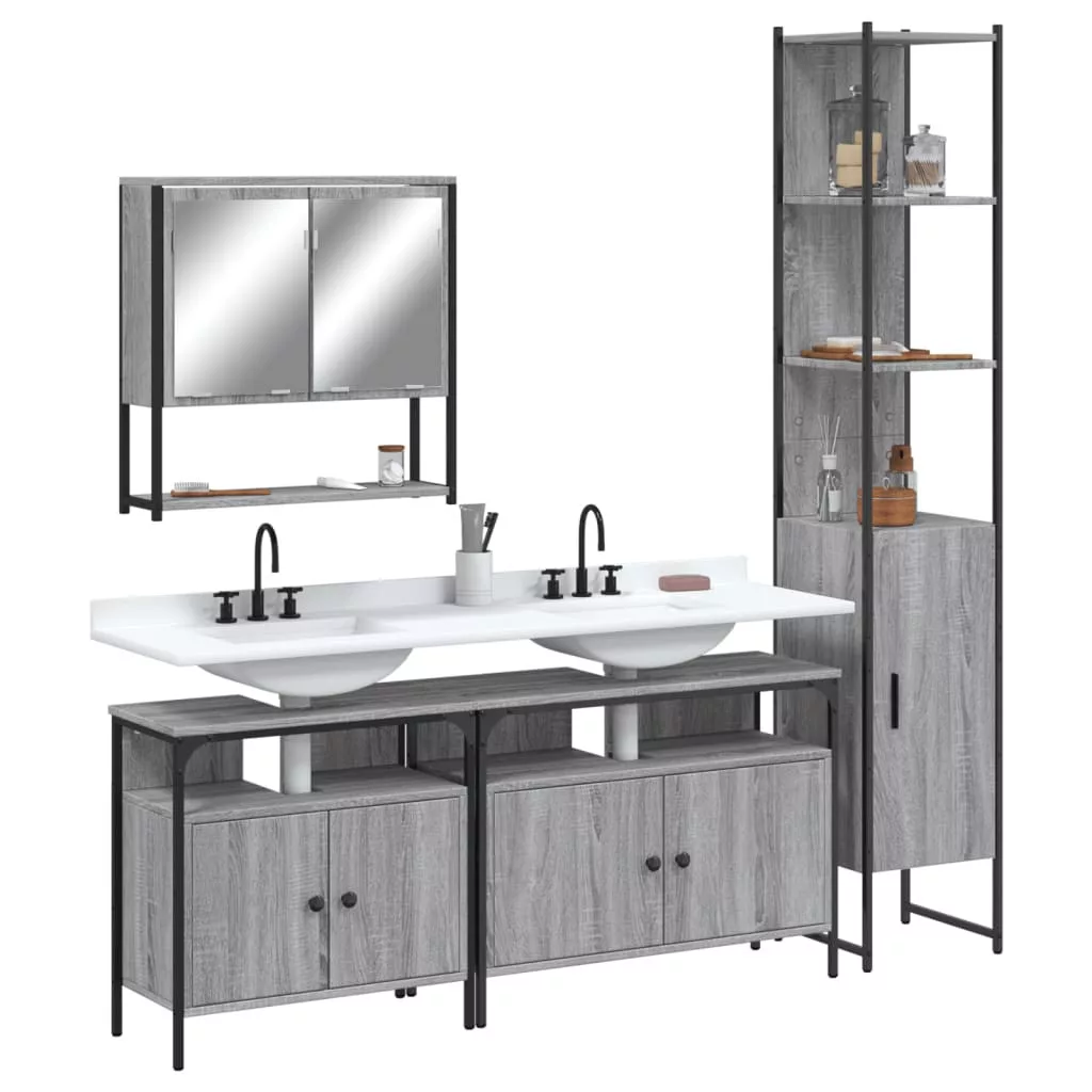 vidaXL 4 részes szürke sonoma színű szerelt fa fürdőszobai bútorszett