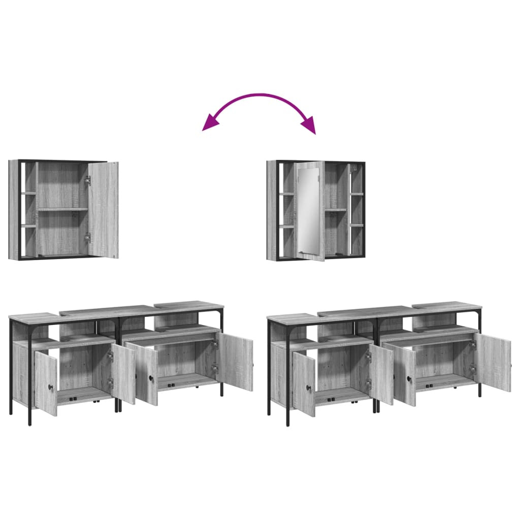 Ez a tetszetős, bőséges tárolóhellyel rendelkező fürdőszobaszekrény-garnitúra elegáns, mégis praktikus kialakítású.