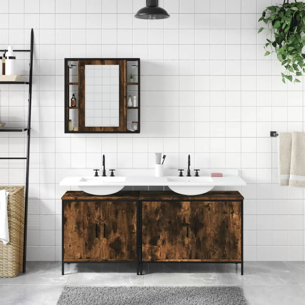 vidaXL 3 részes füstös tölgy szerelt fa fürdőszobai szekrényszett
