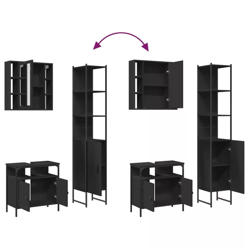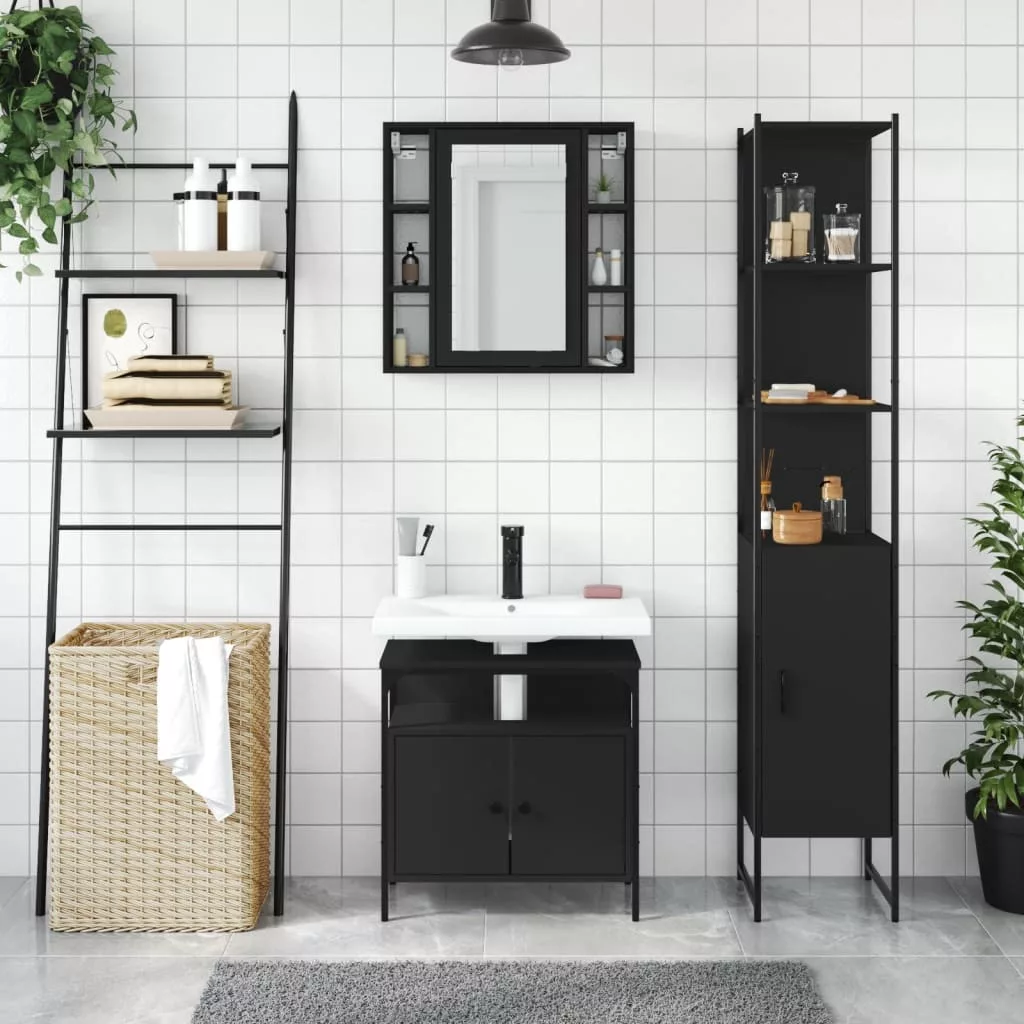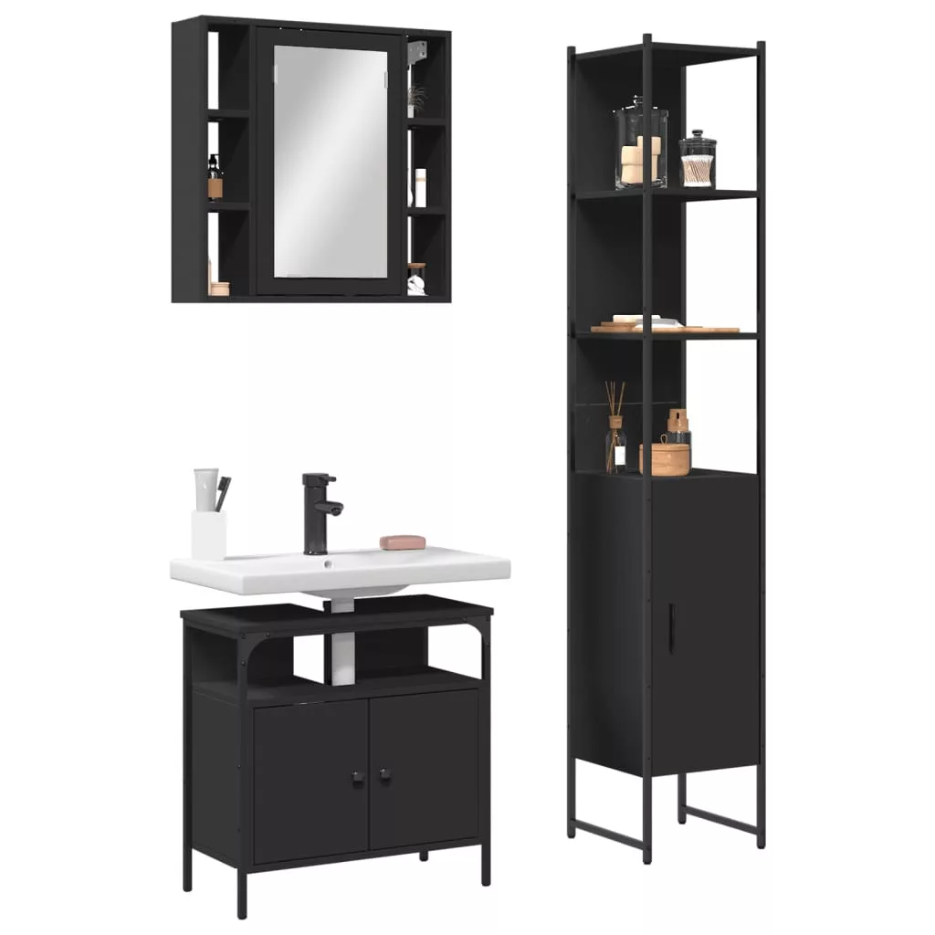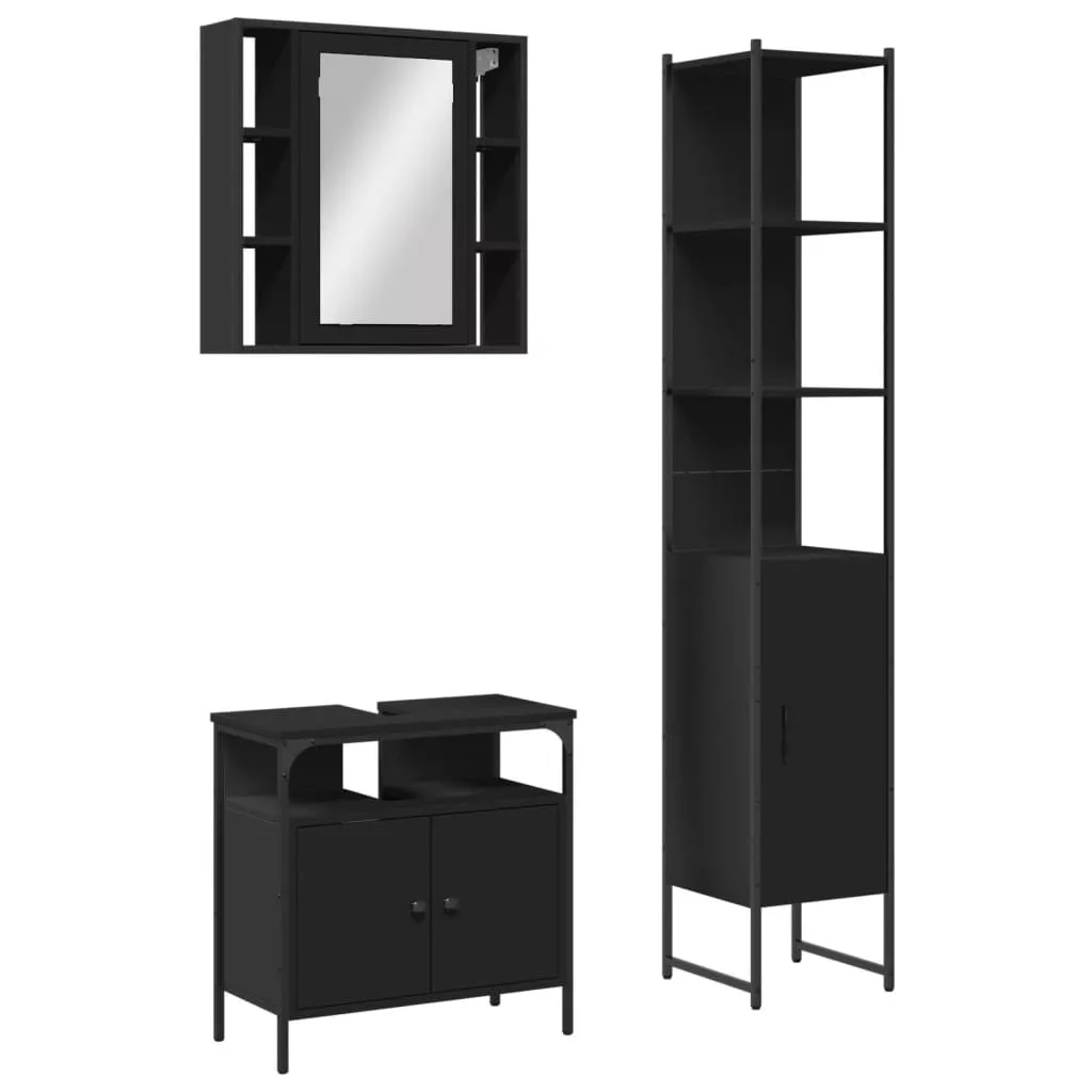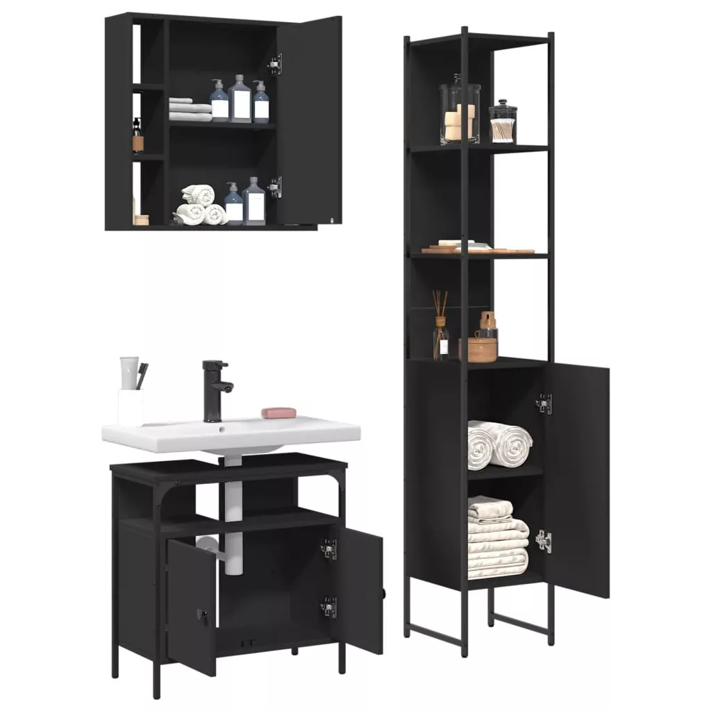 vidaXL 3 részes fekete szerelt fa fürdőszobaszekrény-szett
